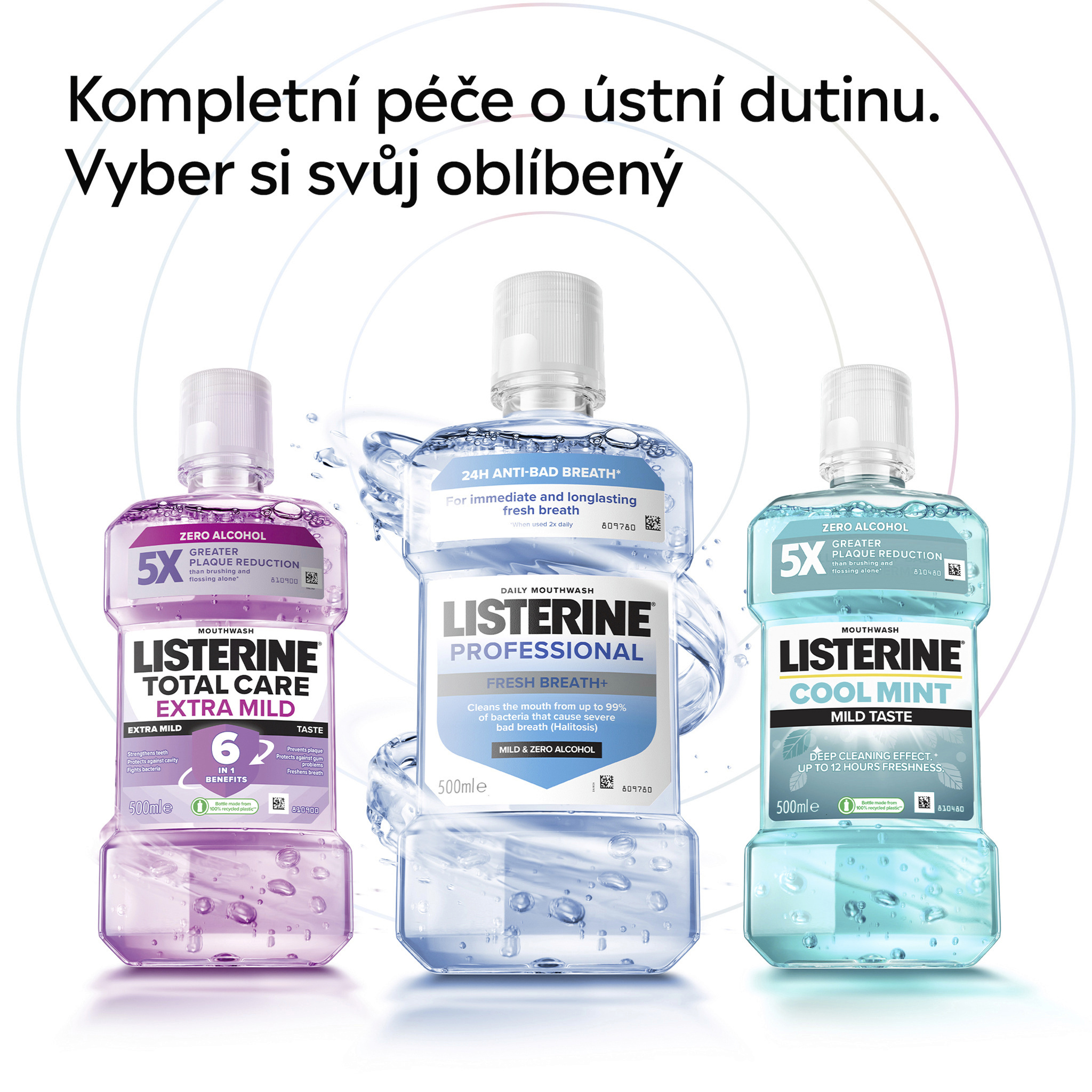 - Účinně bojuje proti škodlivým bakteriím i tam, kam se zubní kartáček nedostane: mezi zuby, na dásních a na jazyku.