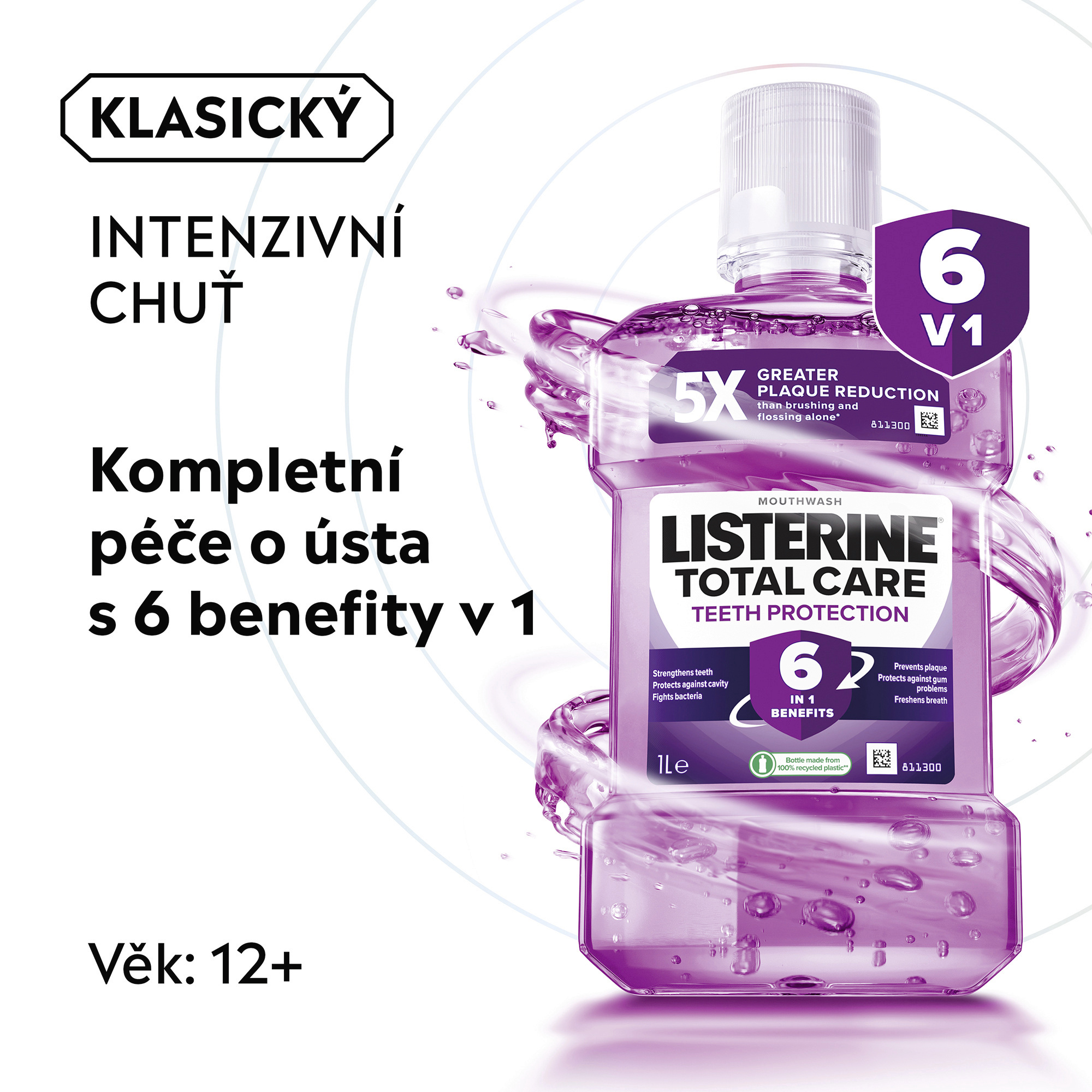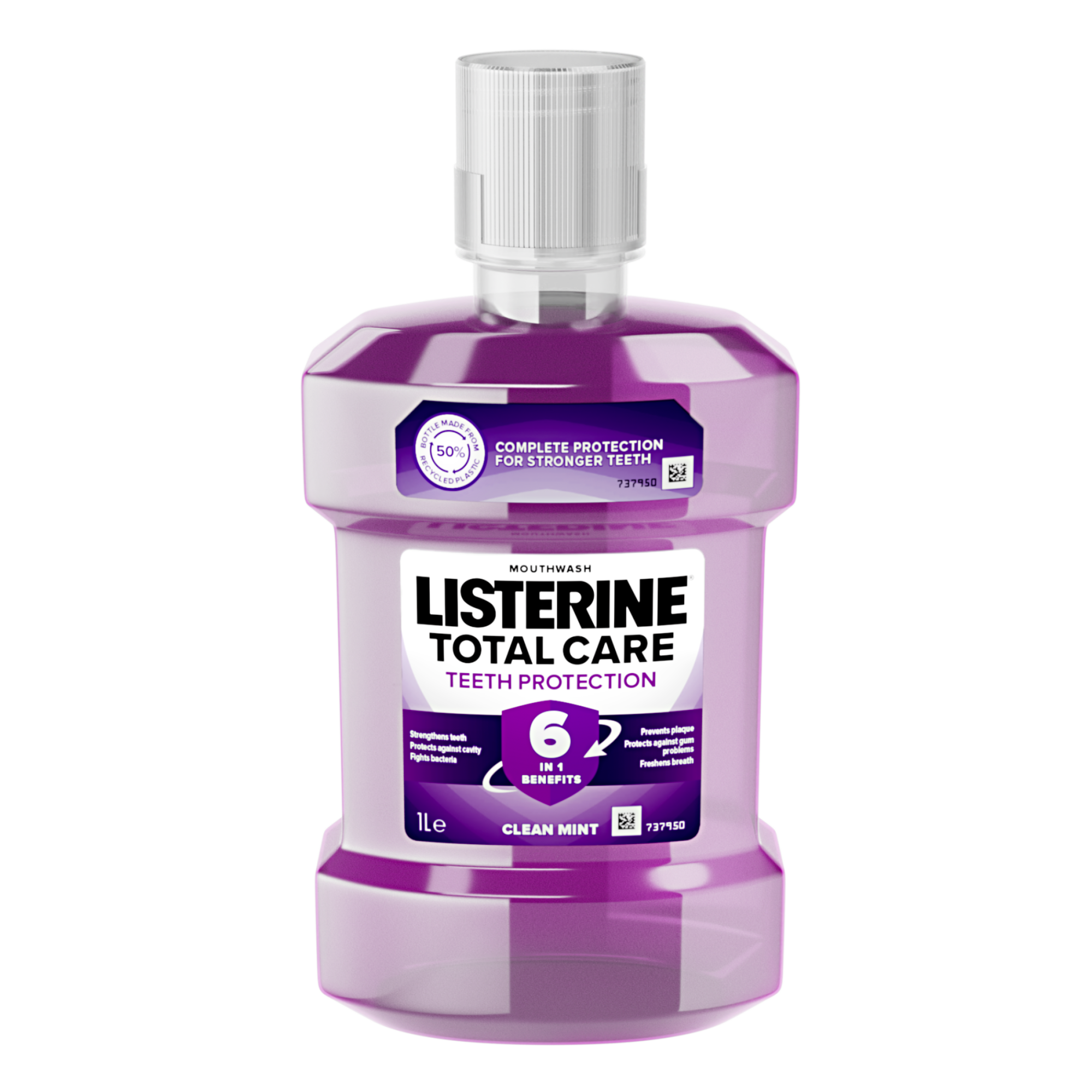 Je prokázáno, že ústní voda LISTERINE® TOTAL CARE TEETH PROTECTION při používání dvakrát denně čistí a chrání - pro celkové zdraví ústní dutiny:
