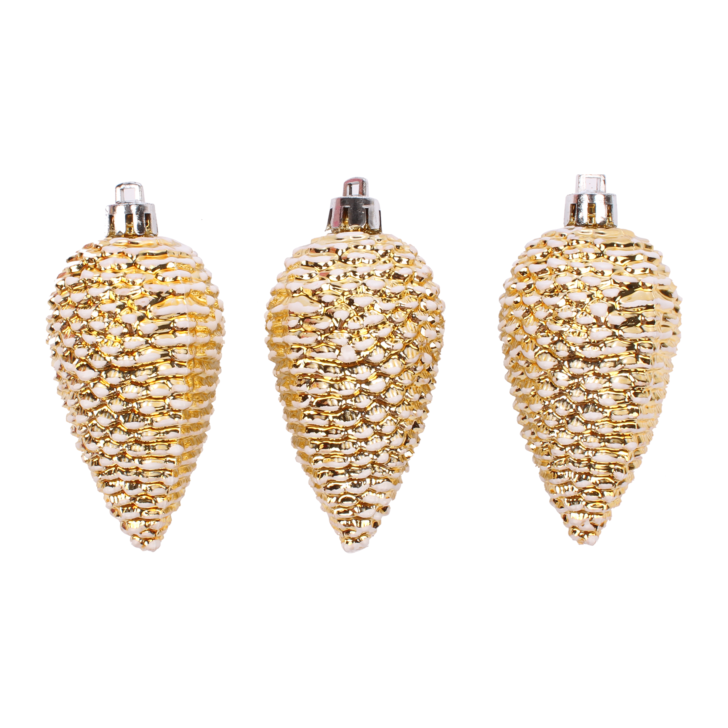 Elegantní sada tří zlatých kuželovitých dekorací s jemně strukturovaným povrchem dodá vašemu interiéru slavnostní lesk.