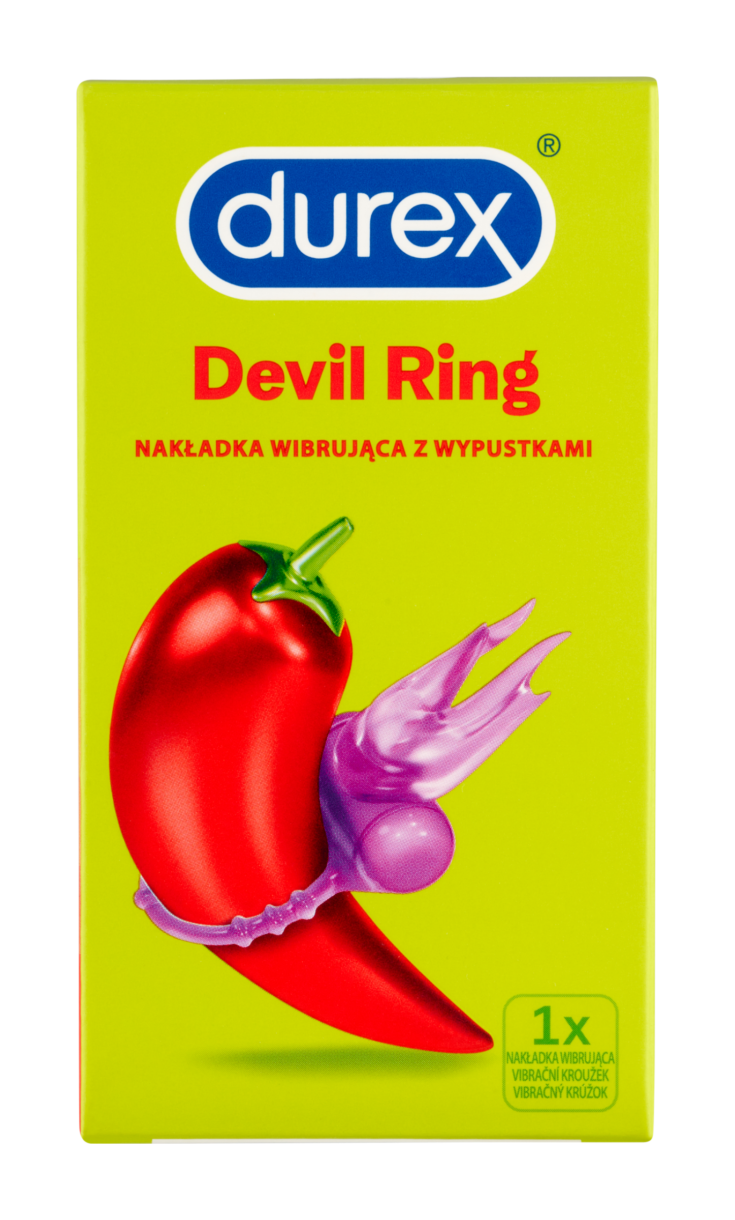 Objevuj potěšení Durex Devil Ring je vibrační kroužek určený na penis s vibrační hlavicí pro stimulaci klitorisu, která je navržena tak, aby ženám poskytla více potěšení během sexu. Vibrační hlavice je sestrojena tak, aby poskytla až 20 minut intenzivních vibrací. Lze použít s kondomy z přírodního kaučukového latexu Durex a lubrikačními gely Durex. Zjistěte více, jděte na durex.com. Každý z nás je jiný. Objev a vyber si erotickou hračku, která ti bude vyhovovat nejlépe. Zjistěte více, jděte na durex.com. Objev více potěšení www.durex.com.