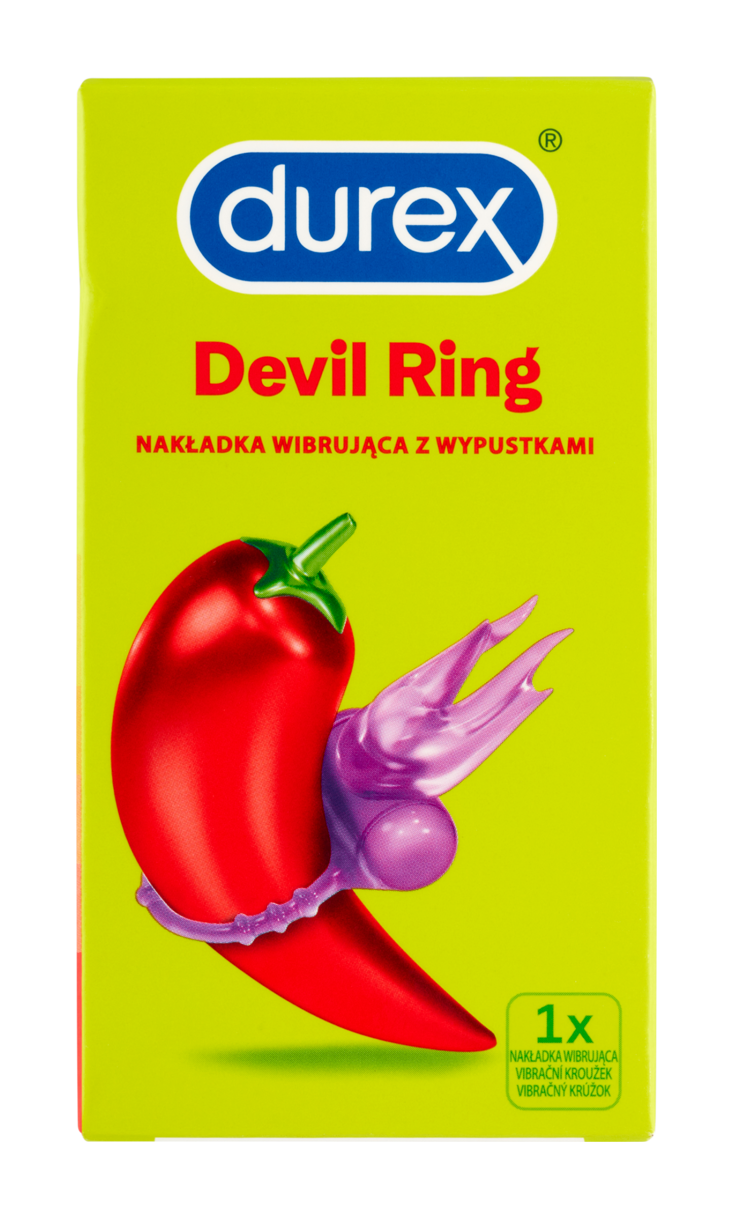 Objevuj potěšení. Durex Devil Ring je vibrační kroužek určený na penis s vibrační hlavicí pro stimulaci klitorisu, která je navržena tak, aby ženám poskytla více potěšení během sexu. Vibrační hlavice je sestrojena tak, aby poskytla až 20 minut intenzivních vibrací.