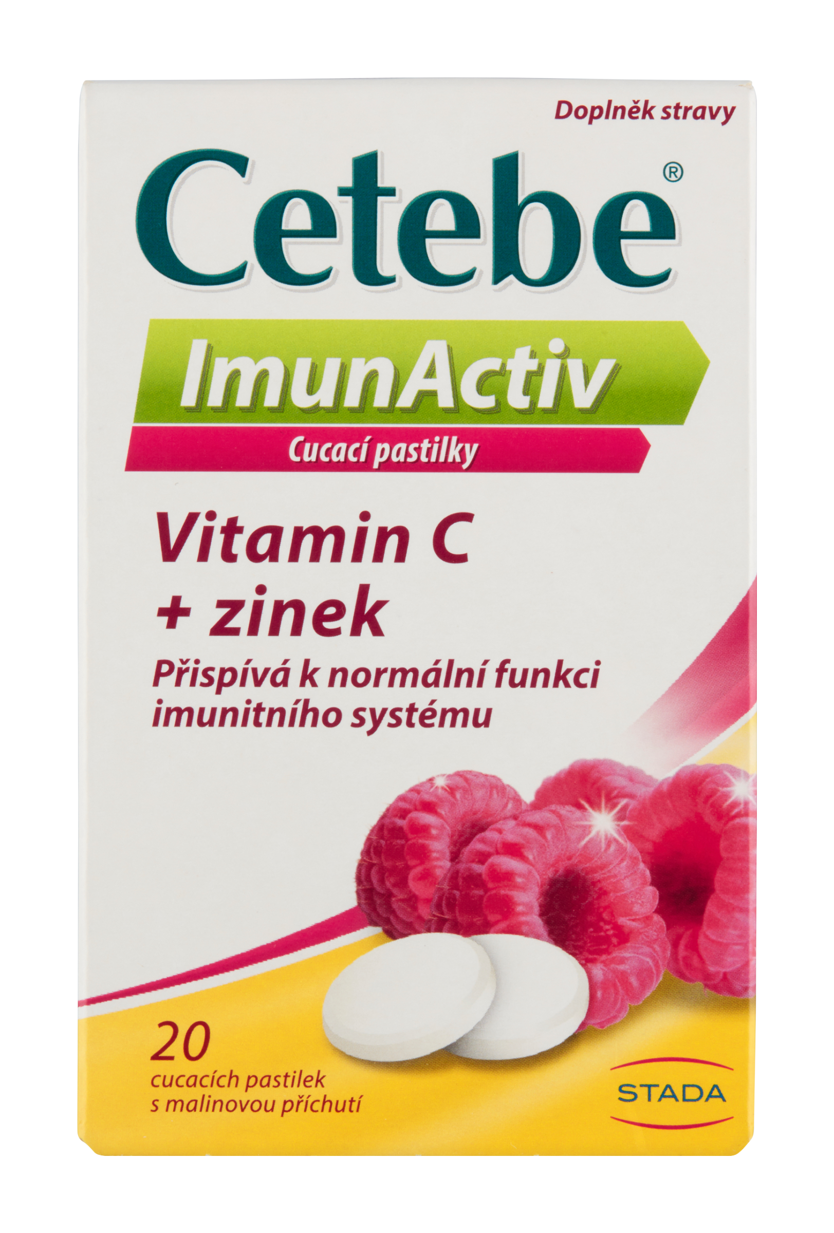 cukr, vitamin C, Maltodextrin, protispékavá látka oxid křemičitý, citrát zinečnatý, protispékavá látka hořečnaté soli mastných kyselin, extrakt z aceroly, extrakt ze šípků, malinová příchuť, prášek z rybízové šťávy