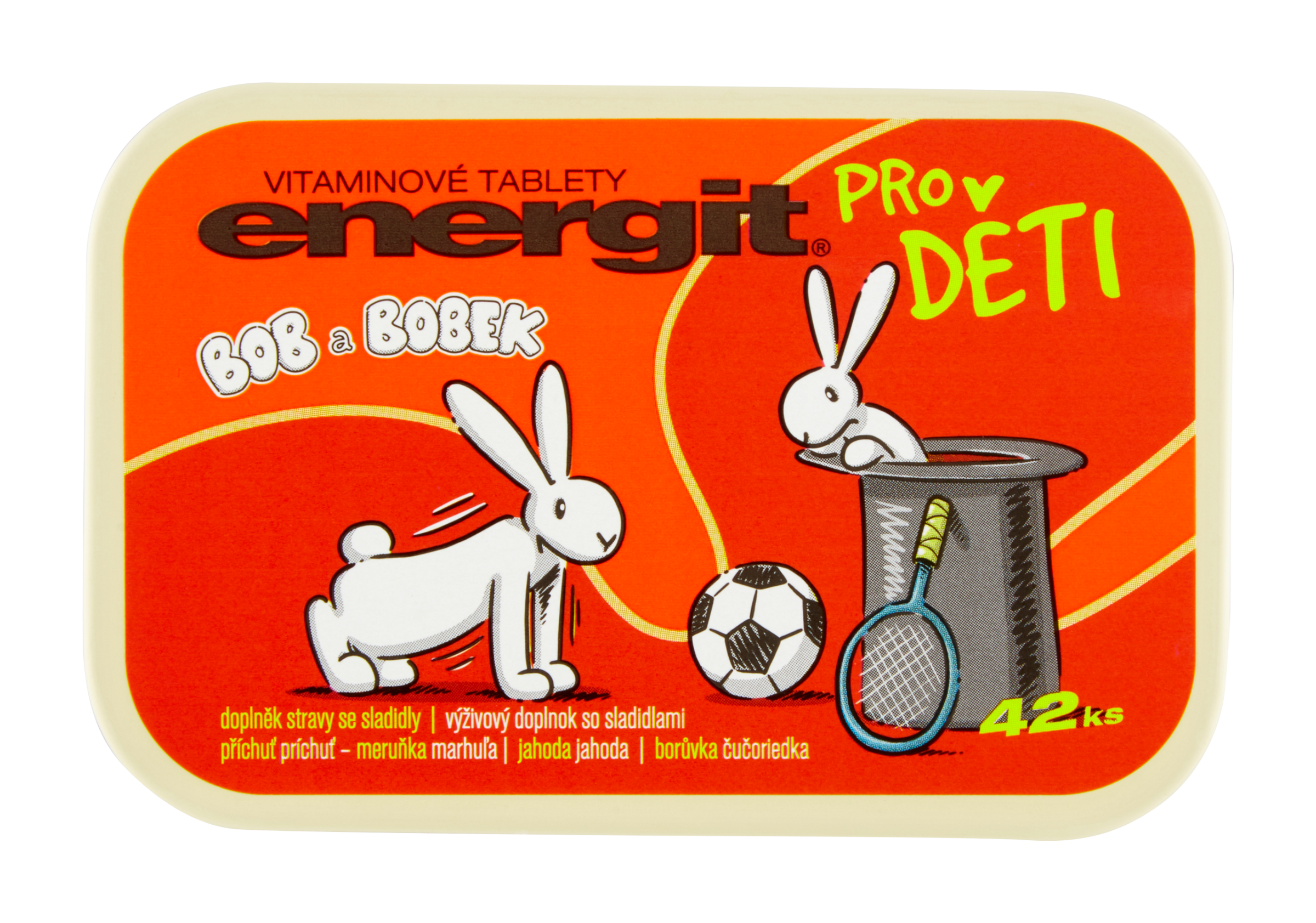 Vitaminové tablety příchuť meruňka jahoda borůvka, doplněk stravy