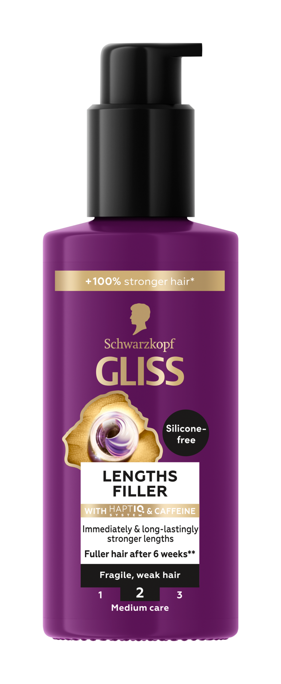 Úroveň péče Gliss: 2 - střední péče s vyváženým složením vyživujících složek. Tato vlasová péče Gliss se systémem HAPTIQ vytváří mikrovazby a posiluje strukturu vlasů pro krásné výsledky, které můžete vidět a cítit. Tato vlasová péče má příjemnou pižmovou vůni a její složení obsahuje 96 % složek přírodního původu včetně vody. Výrobky na vlasy Gliss jsou schváleny organizací PETA**. Složení je bez silikonů a veganské***.