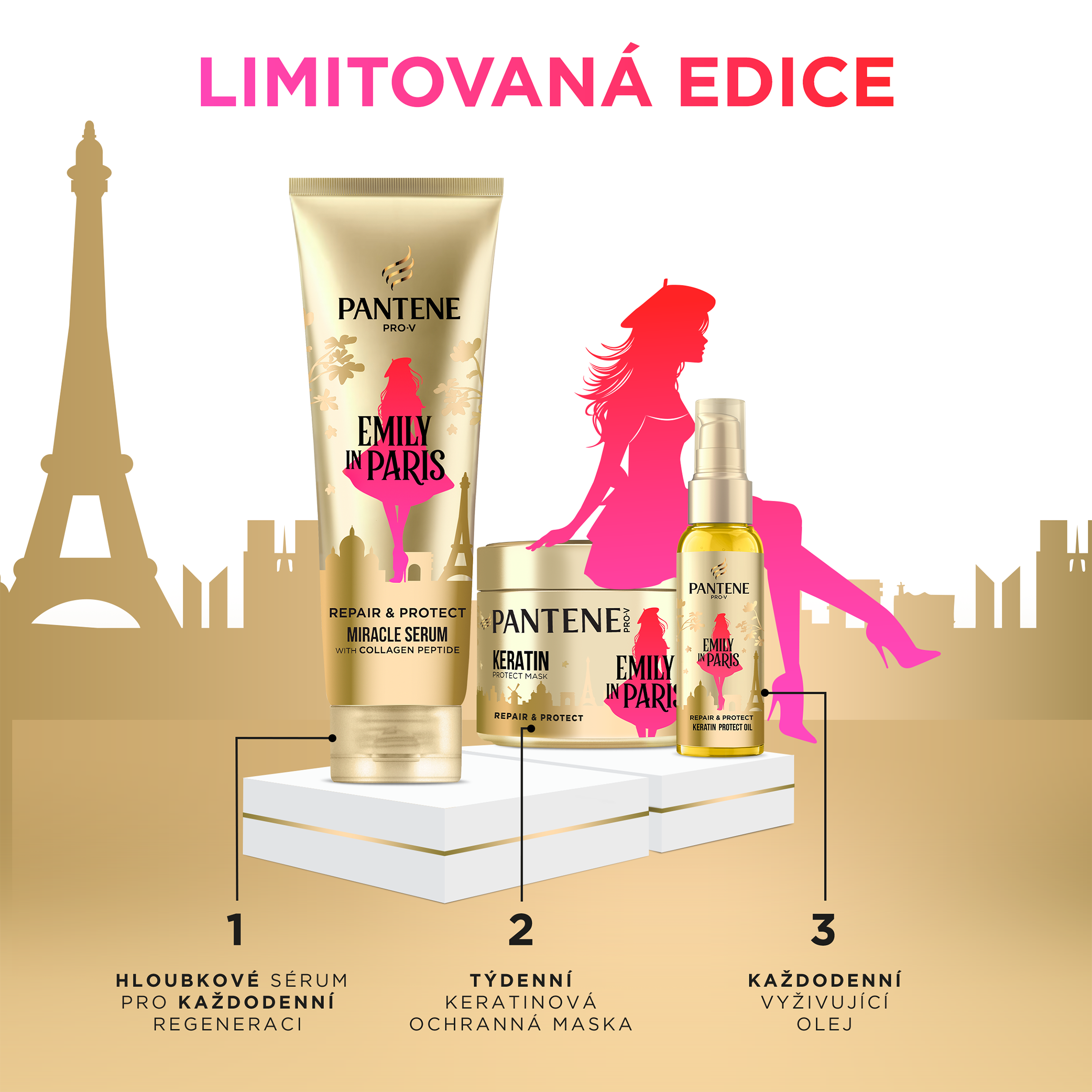 VLASY JSOU TÍM NEJDŮLEŽITĚJŠÍM MÓDNÍM DOPLŇKEM: Vlasový olej Pantene x Emily in Paris Keratin Protect pomáhá obnovovat a chránit vlasy před viditelným poškozením tak, aby byly každý den krásné a zdravé
