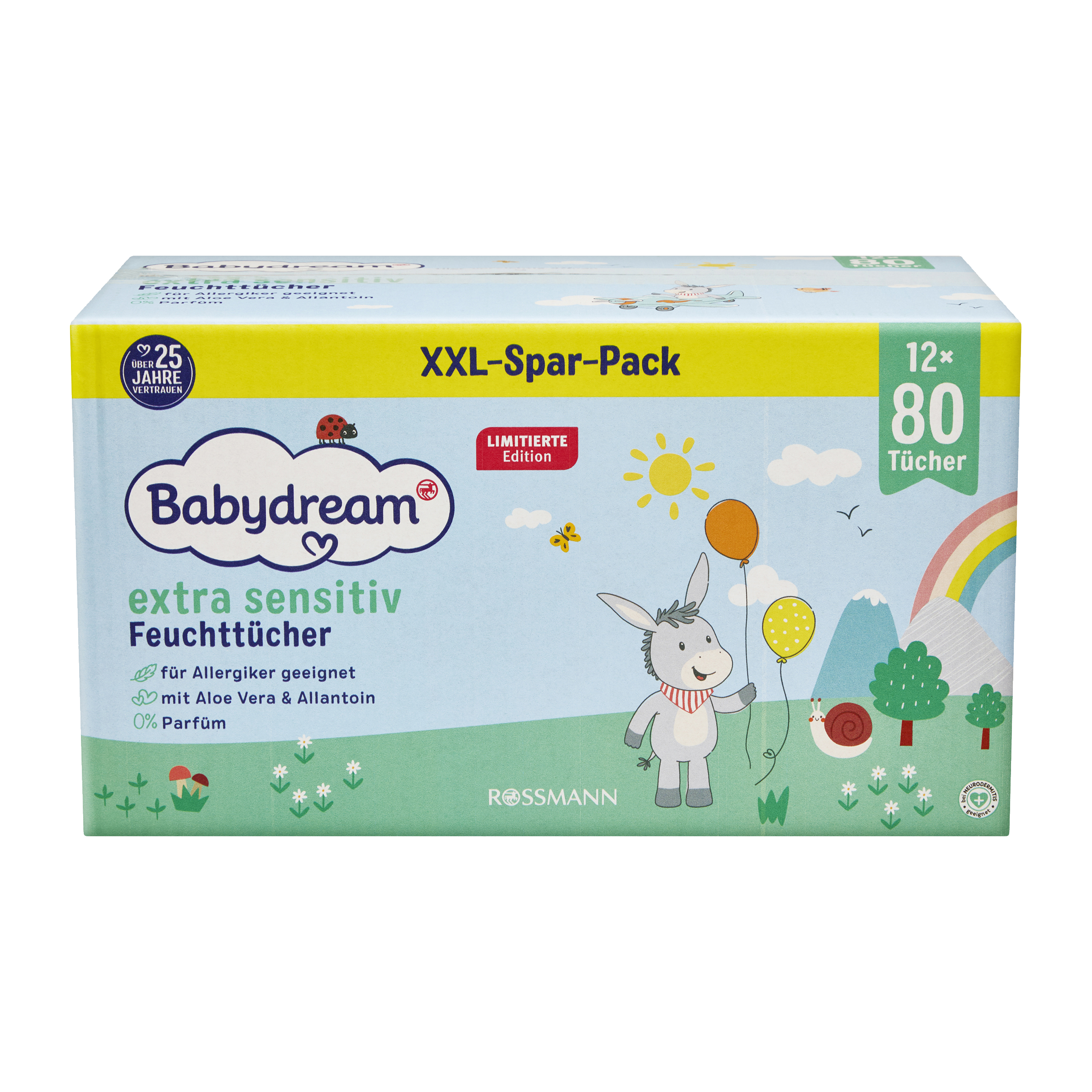 Naše neparfemované ubrousky Babydream extra sensitive jemně a důkladně čistí i velmi citlivou dětskou pokožku náchylnou k alergiím. Složky jako aloe vera a alantoin pokožku zklidňují a hydratují. Díky praktickému skládání máte každý ubrousek po ruce, takže můžete mít své dítě vždy v ochranné ruce. Uzávěr udržuje ubrousky vlhké i po otevření. To znamená, že extra jemná péče o dítě je vždy na dosah ruky!