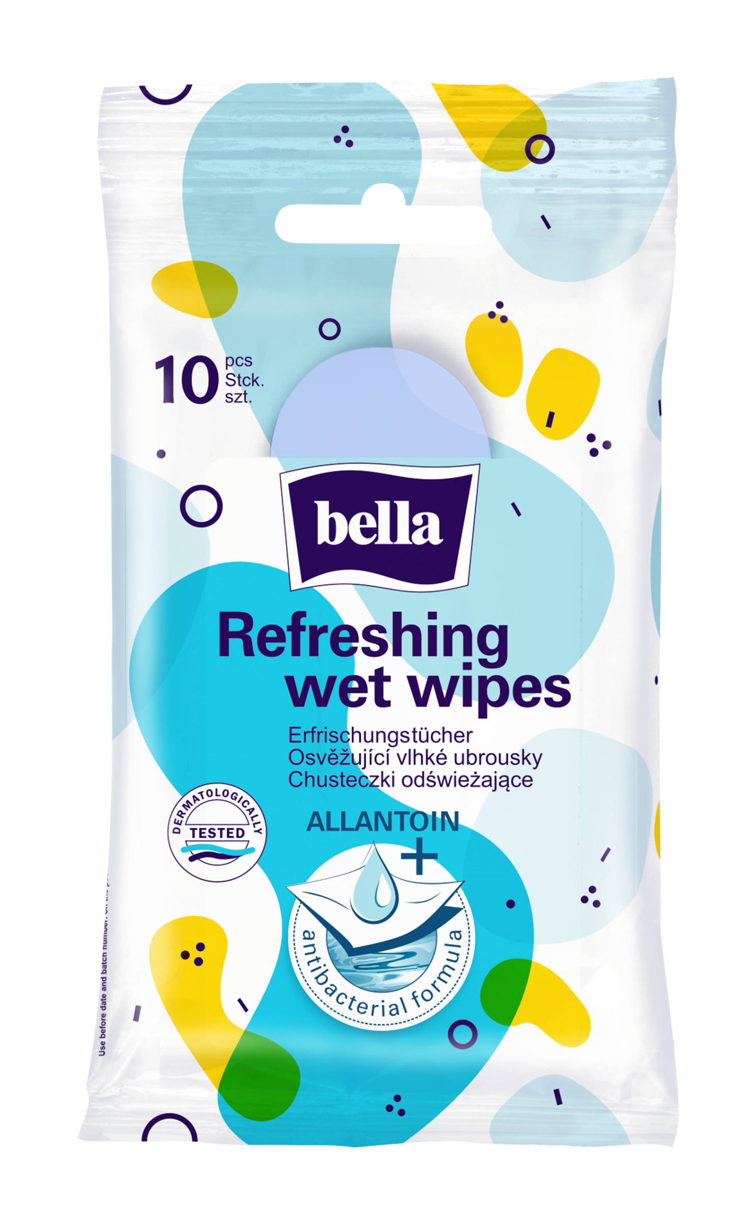 Osvěžující vlhčené ubrousky Bella s alantoinem a antibakteriální složkou pokožku čistí a desinfikují. Vhodné na cesty, při sportu nebo jinde mimo domov k očištění pokožky. Díky jemnému složení bude pokožka čistá a desinfikovaná. Ubrousky neobsahují alkohol ani parabeny.