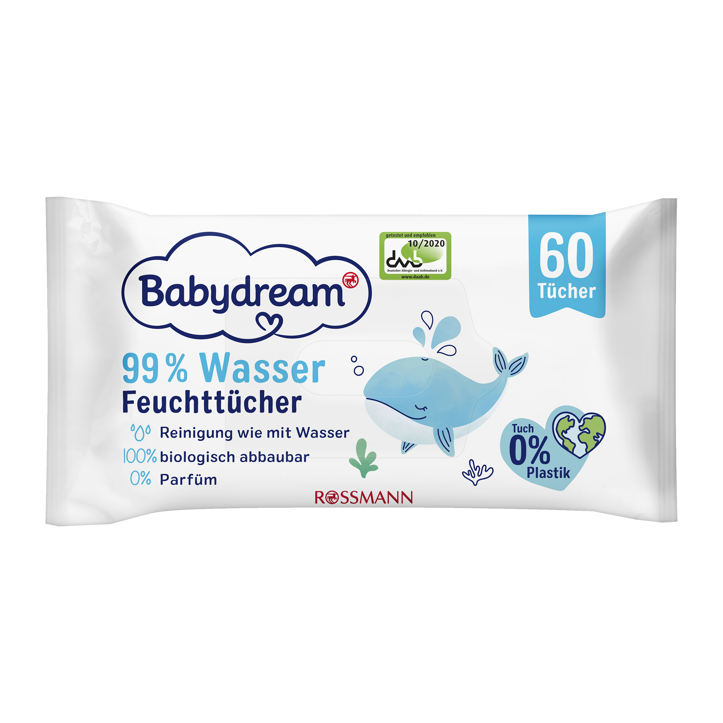 Naše vlhčené ubrousky Babydream s 99% vody jemně a účinně čistí. Snížili jsme přísady na minimum a přidali jsme hodně vody. Ubrousky jsou prakticky poskládané do sebe, takže lehce vytahují z uzavíratelného balení. Čistí a pečují o dětskou pokožku od prvního dne.