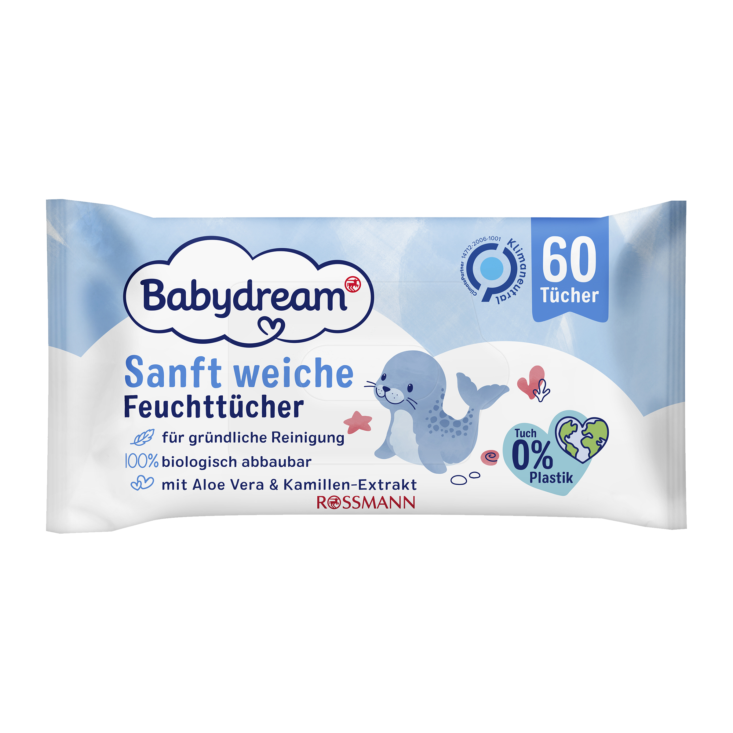 S našimi vlhčenými ubrousky Babydream jemně a důkladně očistíte jemnou pokožku vašeho dítěte. Ubrousky obsahují Aloe vera a výtažek z heřmánku a tyto složky pečují o pokožku obzvláště jemně a chrání ji před vysycháním.