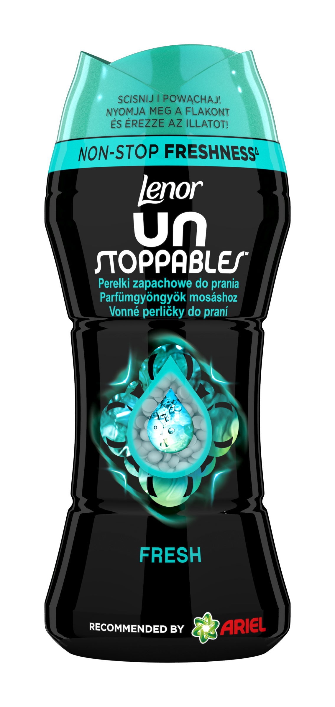 Vonné perličky do praní Lenor Unstoppables jsou k dostání v různých variantách, z nichž každá dává prádlu intenzivnější vůni a svěžest v každém praní. Perličky Lenor Unstoppables dávají prádlu intenzivní svěží vůni až do dalšího vyprání. Tato vůně vydrží na oblečení až 12 týdnů (při uskladnění prádla), takže si ho můžete kdykoliv obléknout a bude provoněné vaší oblíbenou vůní. Naši odborníci na vůně doporučují používat perličky Unstoppables Fresh v případě, že hledáte vůni jiskrného citrusu a šťavnatého ovoce zabalené do průzračných květinových tónů. Pro optimální účinek vhoďte perličky Lenor Unstoppables do prázdného bubnu pračky před každým praním. Pak vložte oblečení, přidejte prací prostředek a aviváž jako obvykle.