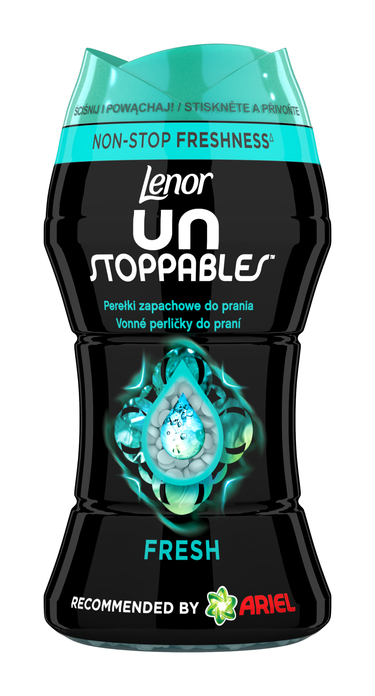 Vonné perličky do praní Lenor Unstoppables jsou k dostání v různých variantách, z nichž každá dává prádlu intenzivnější vůni a svěžest v každém praní. Perličky Lenor Unstoppables dávají prádlu intenzivní svěží vůni až do dalšího vyprání. Tato vůně vydrží na oblečení až 12 týdnů (při uskladnění prádla), takže si ho můžete kdykoliv obléknout a bude provoněné vaší oblíbenou vůní. Naši odborníci na vůně doporučují používat perličky Unstoppables Fresh v případě, že hledáte vůni jiskrného citrusu a šťavnatého ovoce zabalené do průzračných květinových tónů. Pro optimální účinek vhoďte perličky Lenor Unstoppables do prázdného bubnu pračky před každým praním. Pak vložte oblečení, přidejte prací prostředek a aviváž jako obvykle.