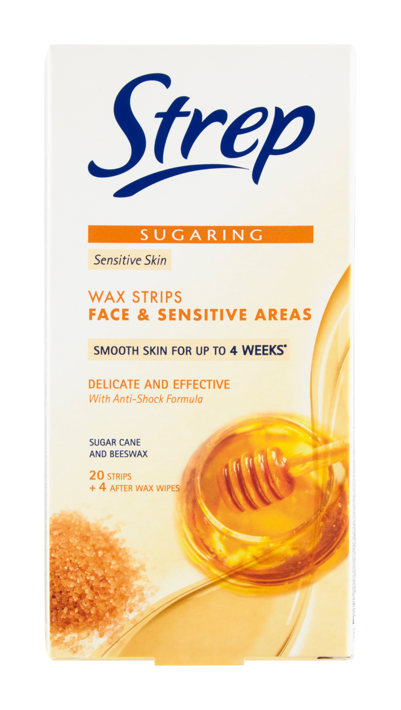 Strep voskové pásky pro epilaci tváře a citlivých míst jsou speciálně navrženy tak, aby efektivně odstranily i ty nejjemnější chloupky na tváři a intimních partiích. Každé balení obsahuje 20 voskových pásků a 4 poepilační ubrousky k závěrečné péči.