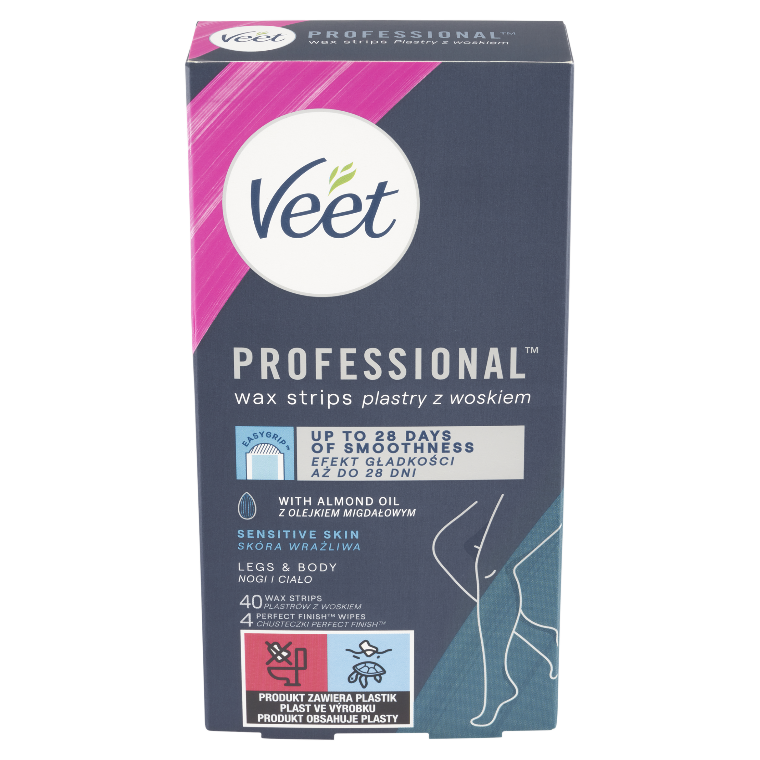 Před použitím voskových pásků Veet si pečlivě přečtěte bezpečnostní pokyny na balení. Před použitím pásek se ujistěte, že je pokožka zcela čistá a suchá. Každý pásek můžete opakovaně použít až do okamžiku, kdy ztratí svou lepivost. Můžete dosáhnout skvělých výsledků pouze pomocí 4 jednoduchých kroků: Pro oddělení pásků od sebe není potřeba mnout je mezi rukama! 1 Pomalu od sebe pásky oddělte pomocí vnějších zaoblených okrajů. 2 Aplikujte jeden pásek na pokožku ve směru růstu chloupků. Použitím zaobleného okraje ve směru růstu chloupků se ujistěte, že vosk dobře drží. 3 Uchopte okraj. Držte pokožku napnutou. Strhněte pásek zpět proti směru růstu chloupků co nejrychleji! Jedním rychlým pohybem co nejblíže pokožce. 4 Po depilaci voskem očistěte veškerý vosk, který zůstal na kůži, pomocí ubrousku Perfect Finish™. Dostatečné množství na 4 depilace obou lýtek.
