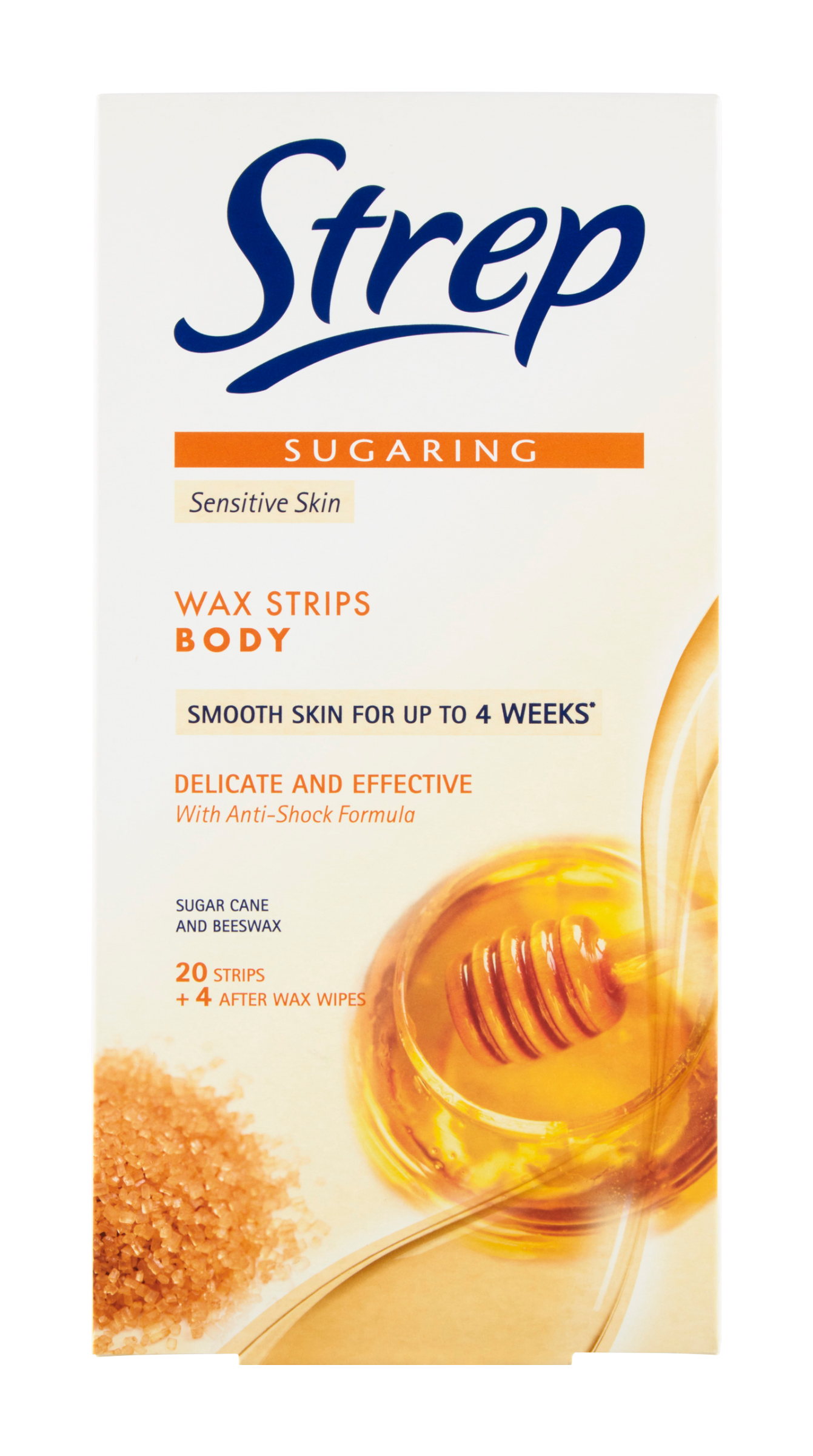 Strep voskové pásky pro epilaci těla efektivně odstraní nežádoucí chloupky. Každé balení obsahuje 20 voskových pásků a 4 poepilační ubrousky k závěrečné péči.