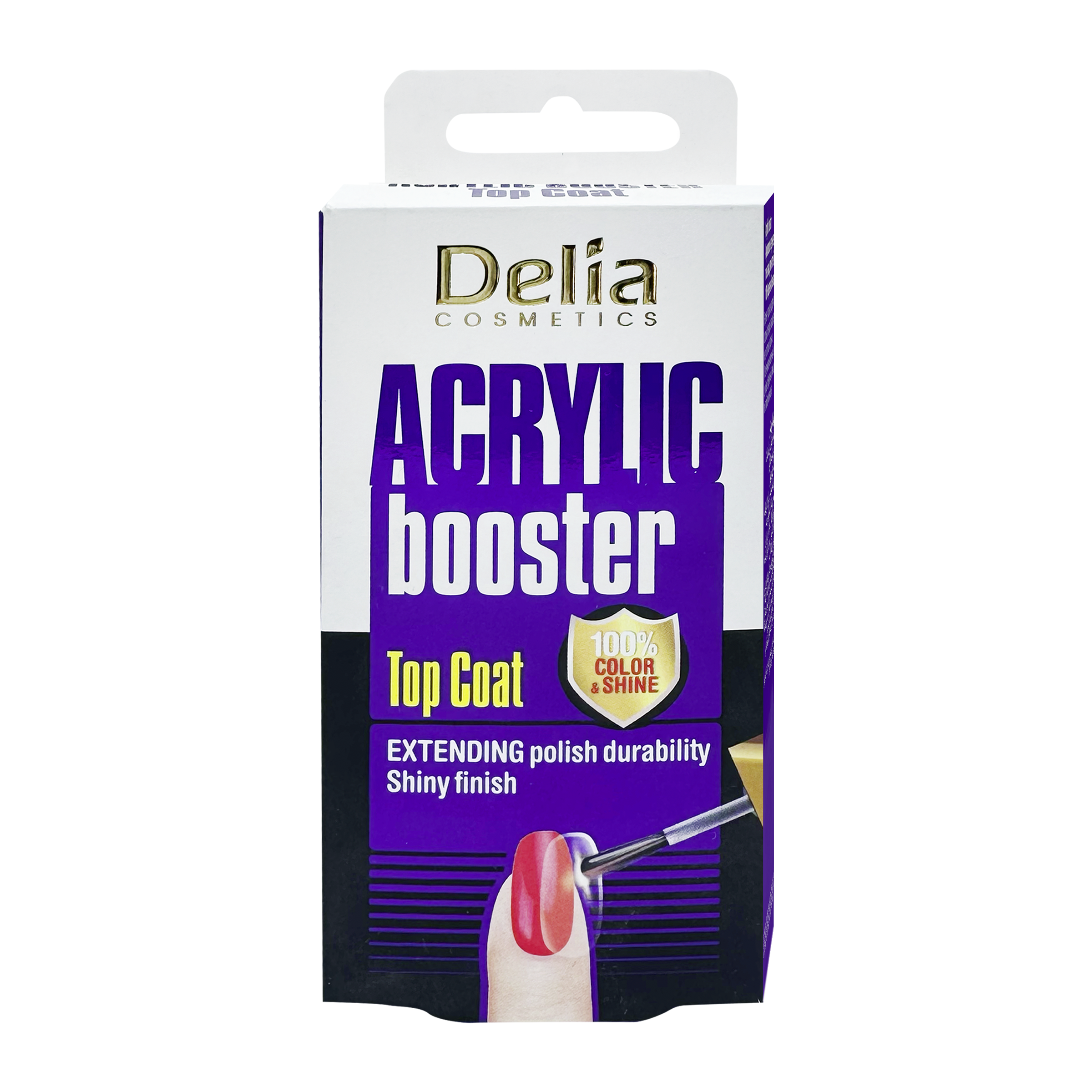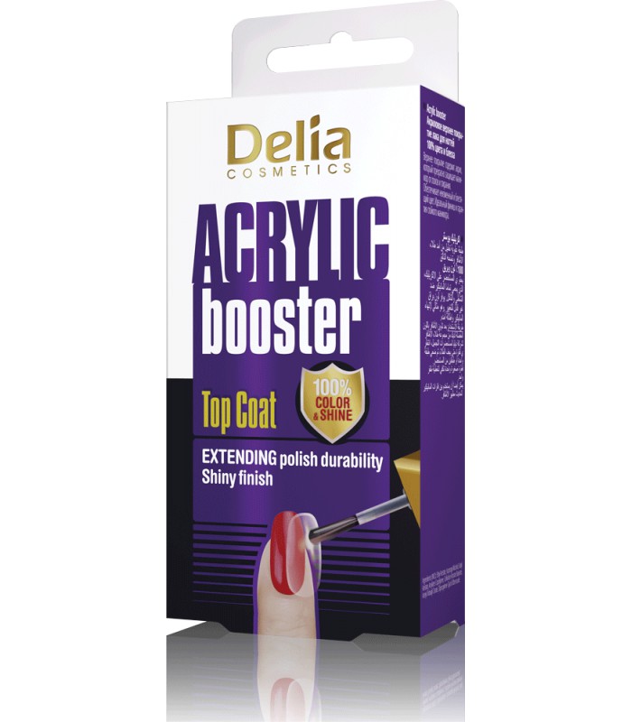 Pokud je pro vás důležitý lesk, barevná stálost a prodloužená výdrž, zvolte Acrylic Booster Top Coat. Obsahuje akryl, který dokonale chrání barevnou manikúru proti odlupování a oděru. Dodáte svým nehtům stálou a lesklou barvu. Pouhá jedna kapka na nehet poskytne perfektní finiš a zaručí trvanlivost manikúry.