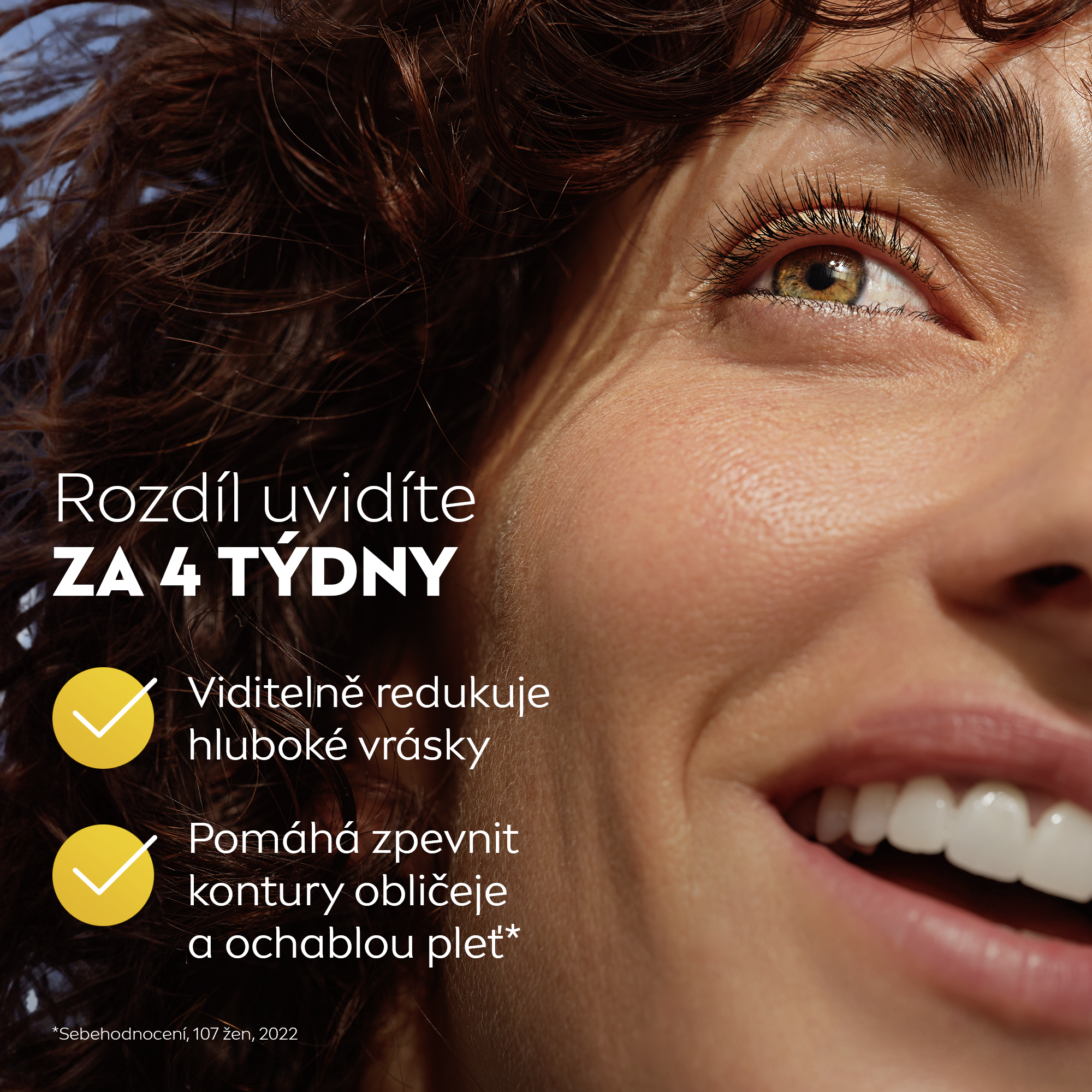 - ntenzivní péče a komfort pleti. 4 týdny: Viditelně redukuje hluboké vrásky. Zpevňuje obrysy obličeje pro 82 % žen.** Doporučený věk 40+