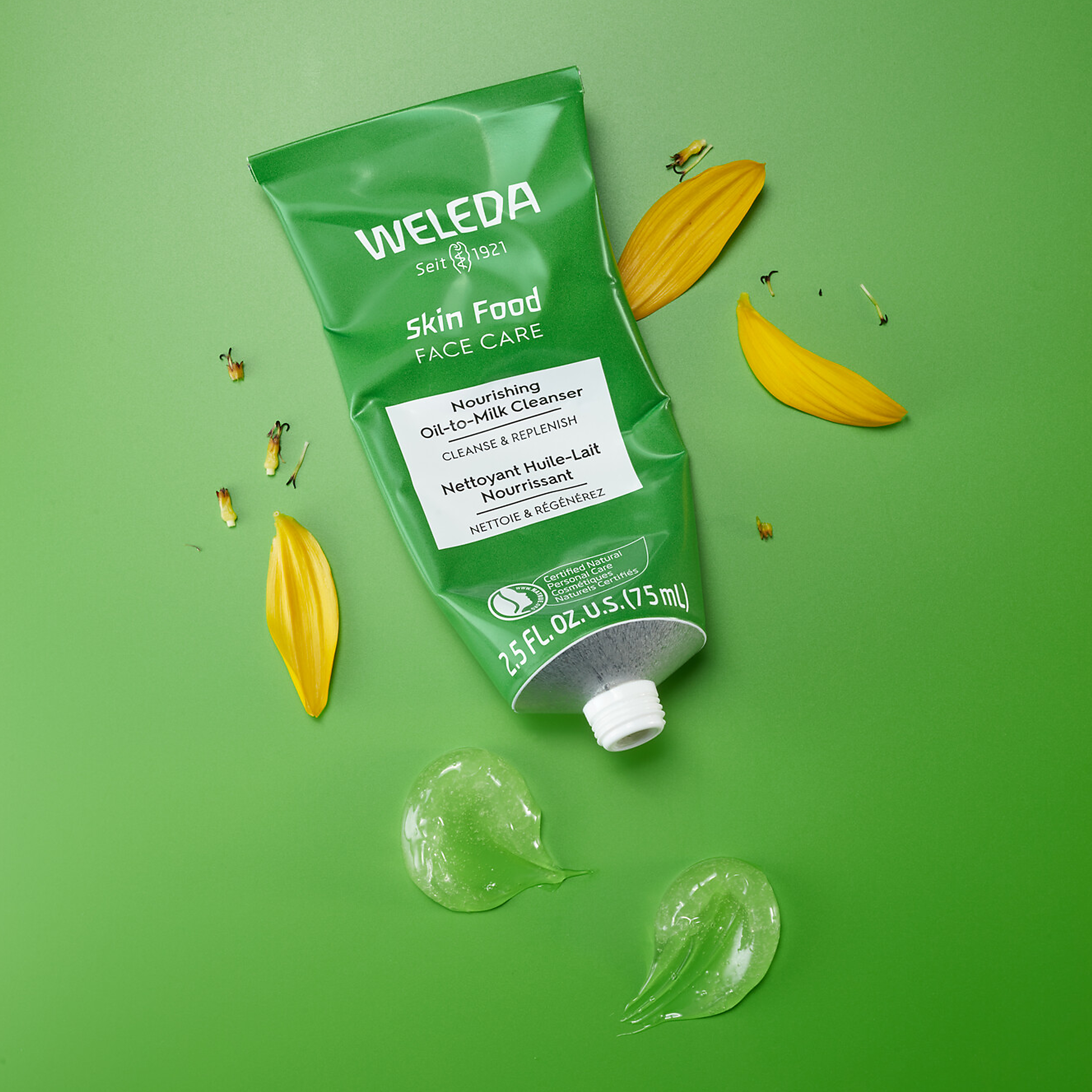 Krémový olejový balzám s výživným organickým slunečnicovým olejem a rostlinnými výtažky z violky, organického měsíčku a heřmánku jemně čistí pleť, zatímco ji zanechává hydratovanou. Balzám se při kontaktu s vodou rychle přemění v mléčnou emulzi a snadno se smývá. Balzám je možné v tenké vrstvě použít jako pleťovou masku. Co umí Skin Food Nourishing Cleansing Balm od Weledy: