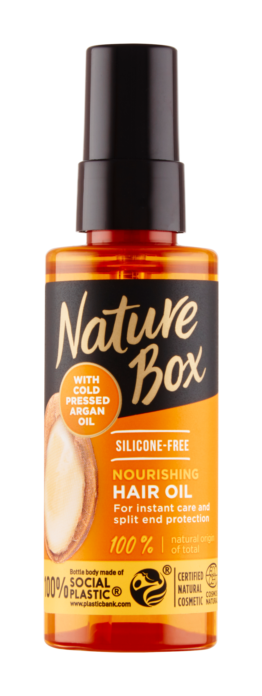 Nature Box vyživující vlasový olej se 100% arganovým olejem lisovaným za studena známým pro obsah cenných vitamínů a antioxidantů.