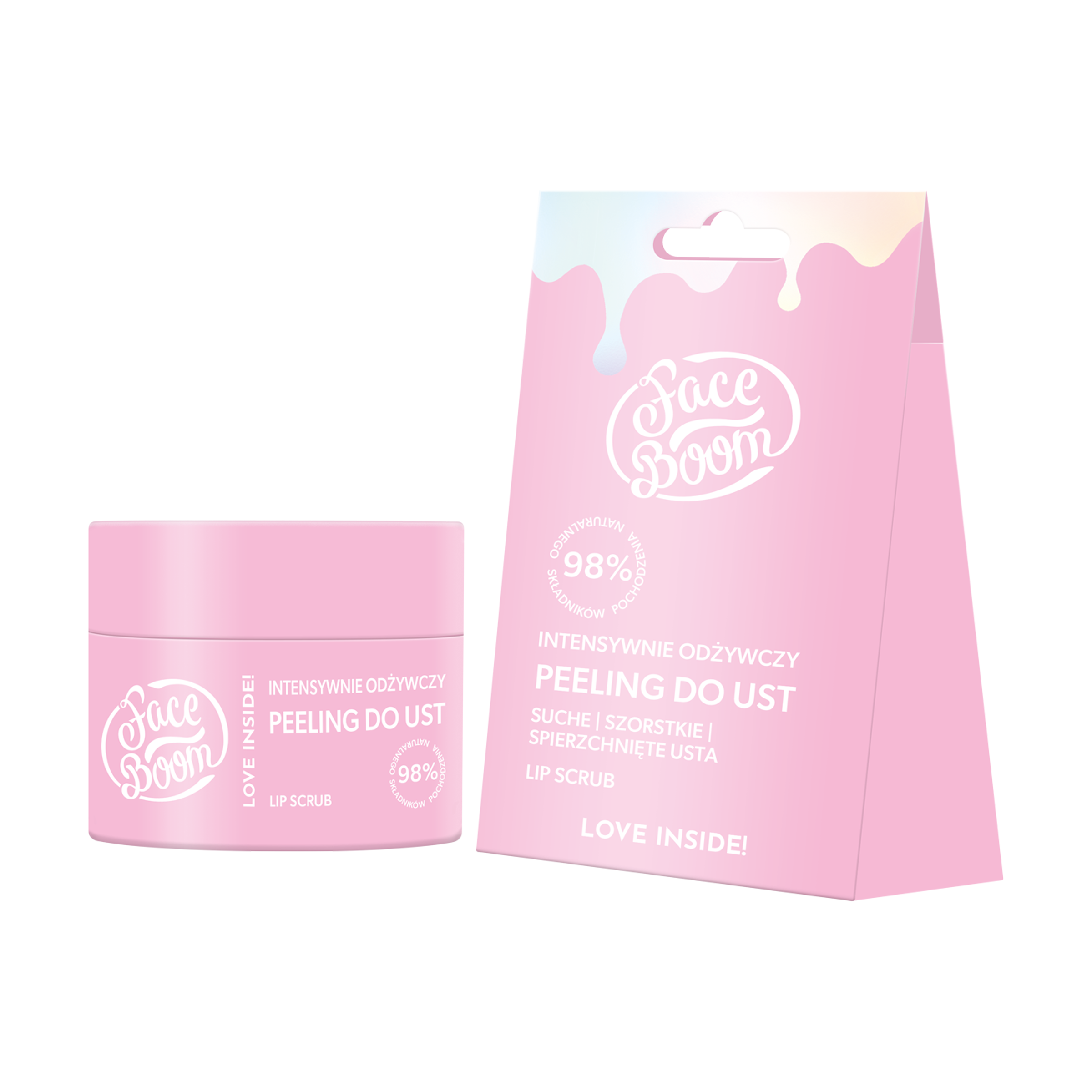 Naberte potřebné množství a naneste jej na rty. Poté jemně masírujte do trů po dobu 30-60 sekund. Jemně otřete nebo opláchněte vlažnou vodou. Pro dosažení nejlepších výsledků mě používejte 2-3krát týdně a poté naneste hydratační balzám na rty z řady FaceBoom.