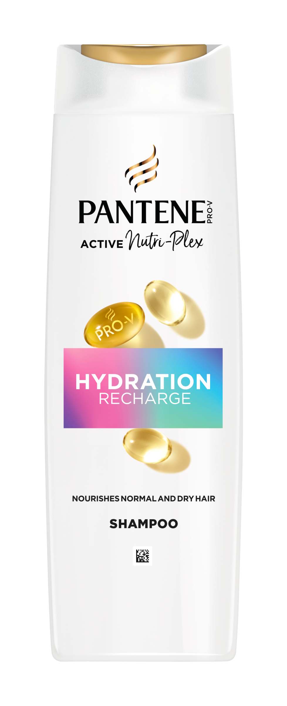 Objevte šampon Pantene Hydration Recharge, dokonalý zdroj výživy a ochrany vašich vlasů. Naše šetrné složení s PRO-V a inovativní technologií ACTIVE NUTRI-PLEX myje vaše vlasy a zároveň jim dodává důležité živiny. Při použití s Pantene bezoplachovým kondicionérem okamžitě proměňuje suché vlasy, zanechává je hebké, hladké a lesklé a zároveň pomáhá chránit vlasové vazby. Doplňte svou každodenní péči o Pantene přípravek na ochranu před teplem pro ještě více výživy aktivované teplem.