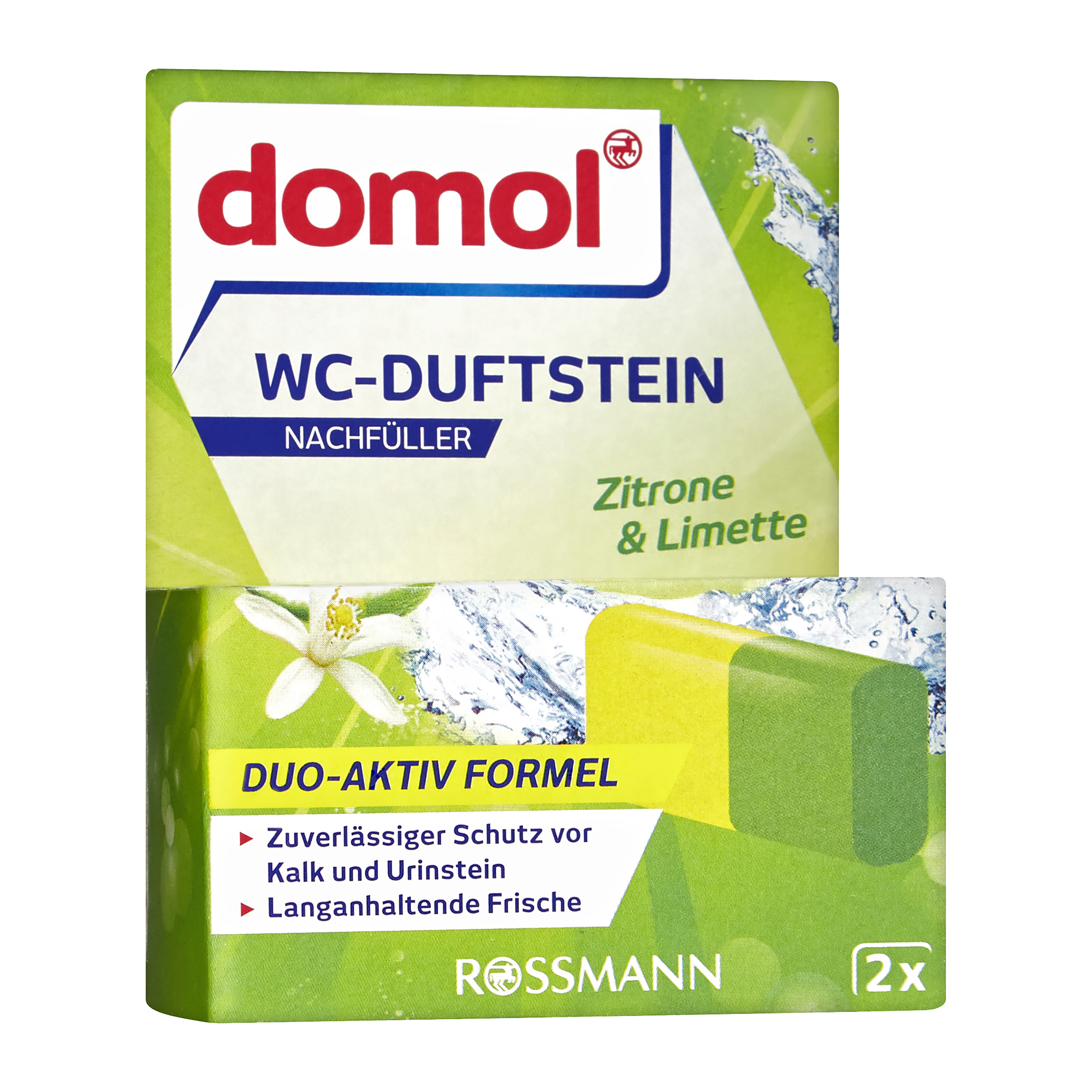 Těšte se na dlouhotrvající čistotu a svěží vůni vaší toalety - s náplní toaletního vonného kamene domol citron & limetka.