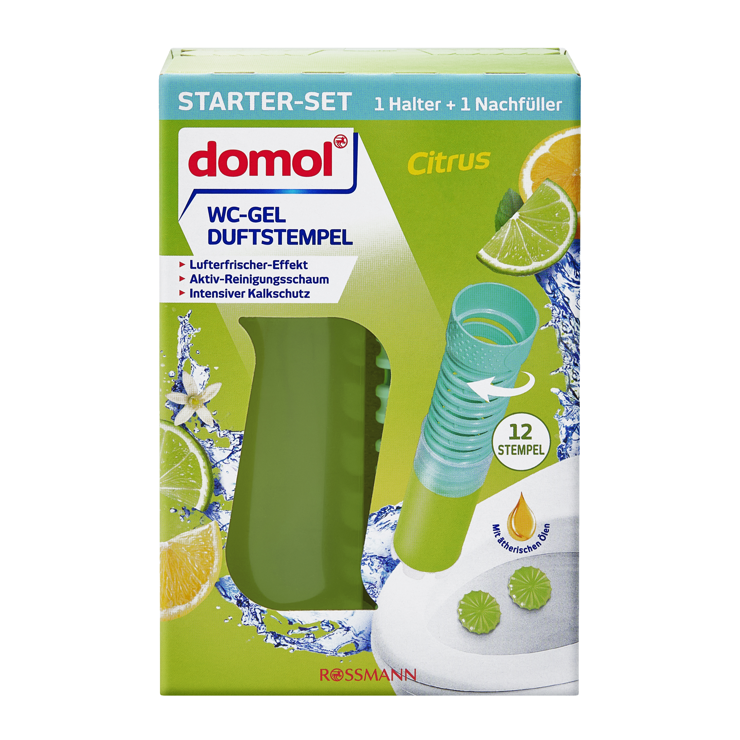 Užijte si svěží a příjemnou vůni vaší toalety. Vonné razítko Domol Citrus Toilet Gel se speciálním gelovým a vonným složením účinně čistí a uvolňuje dlouhotrvající svěží vůni s každým spláchnutím. Zabraňuje usazování vodního kamene a močového kamene, neutralizuje nepříjemné pachy a jeho silná čisticí pěna chrání před usazováním nečistot. Vhodné pro toalety bez okraje.