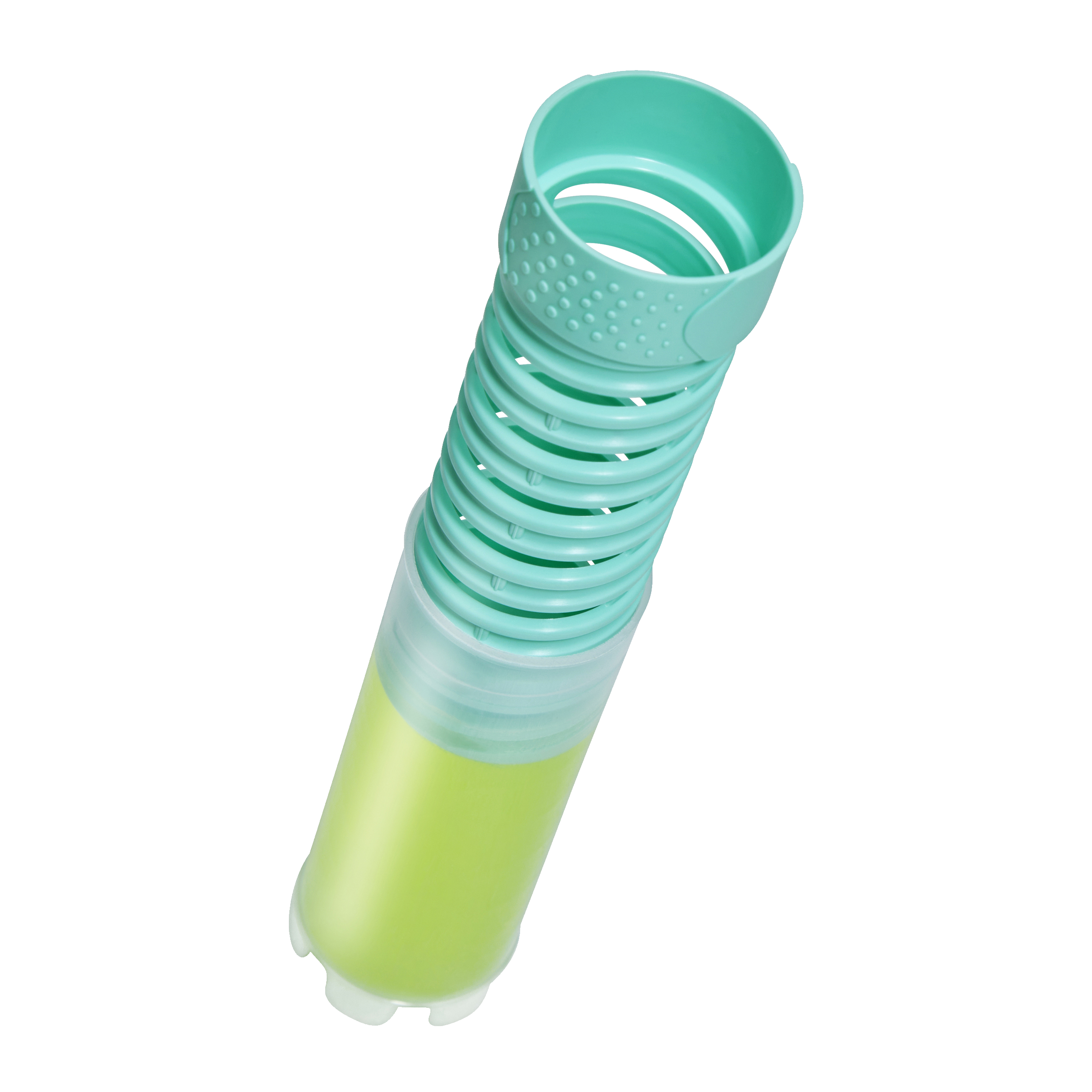 Odstraňte stříbrnou ochrannou fólii z plnicí kartuše. Zašroubujte držák do otvoru pro kartuši. Sejměte a uložte víčko. Sestavený díl pevně přitlačte ke stěně toaletní mísy otevřenou stranou dolů, kde je splachovací proud nejsilnější. Otočte držák o 180 stupňů, dokud neucítíte mírný odpor. Další píst se aktivuje, když je držák otočen dále za bod odporu. Po použití nasaďte víčko zpět. Vyjměte prázdnou kartuši a nahraďte ji náplní. Držák uložte.