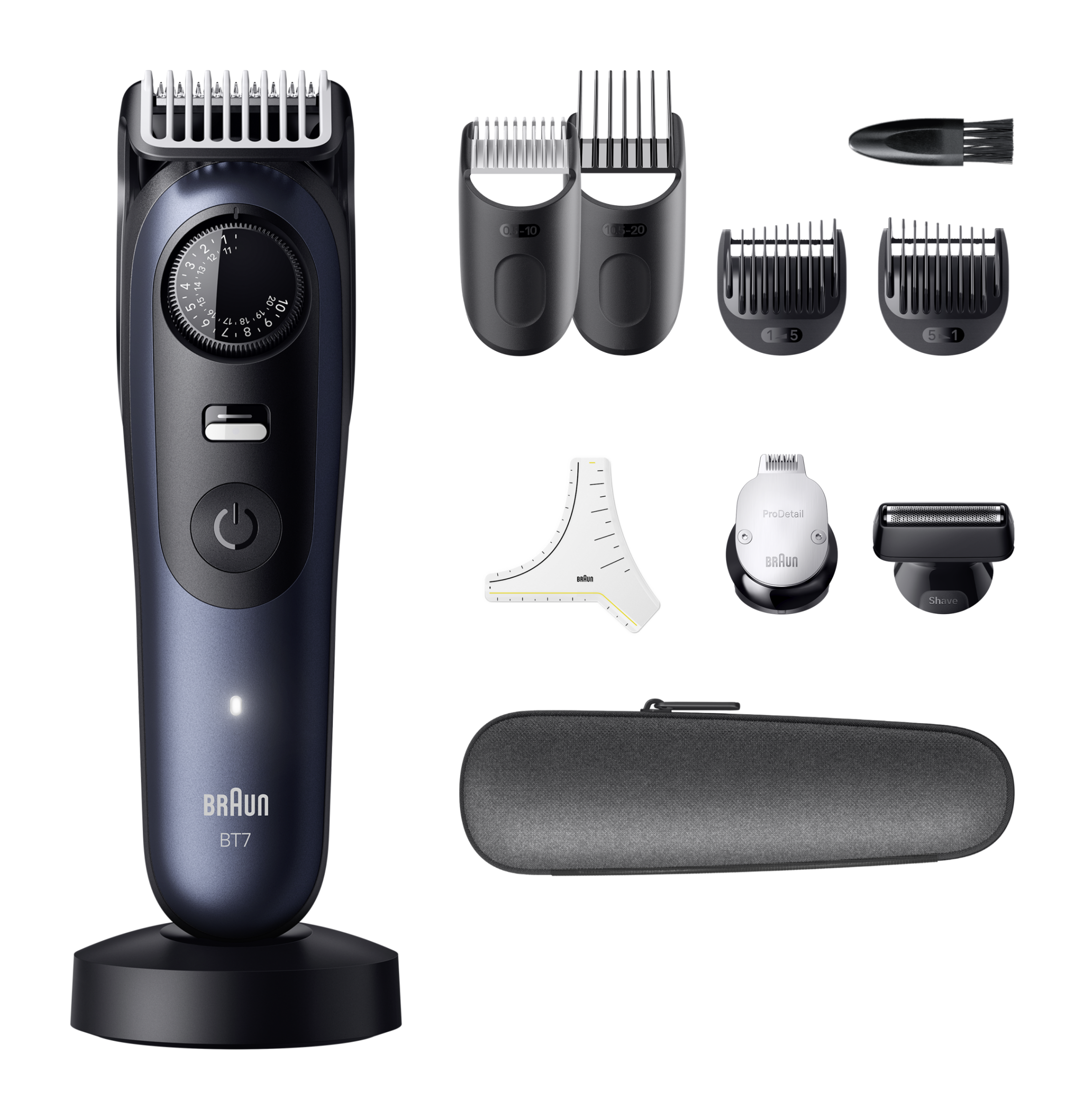 Zastřihovač vousů Braun Series 7, navržený pro profesionální přesnost a dokonalost při každém tahu. Díky břitu ProBlade extrémně ostrému po celou dobu životnosti a technologii AutoSense zachytí tento zastřihovač chloupky i v těch nejobtížněji dostupných místech. Už žádné omyly. Díky zámku PrecisionLock a 40 možnostem nastavení délky máte svůj styl zcela pod kontrolou. Ať už zastřihujete, holíte, upravujete kontury nebo detaily, tento zastřihovač má ty nejlepší nástroje pro dokonalé linie, oholení do ztracena a konečnou úpravu vousů.