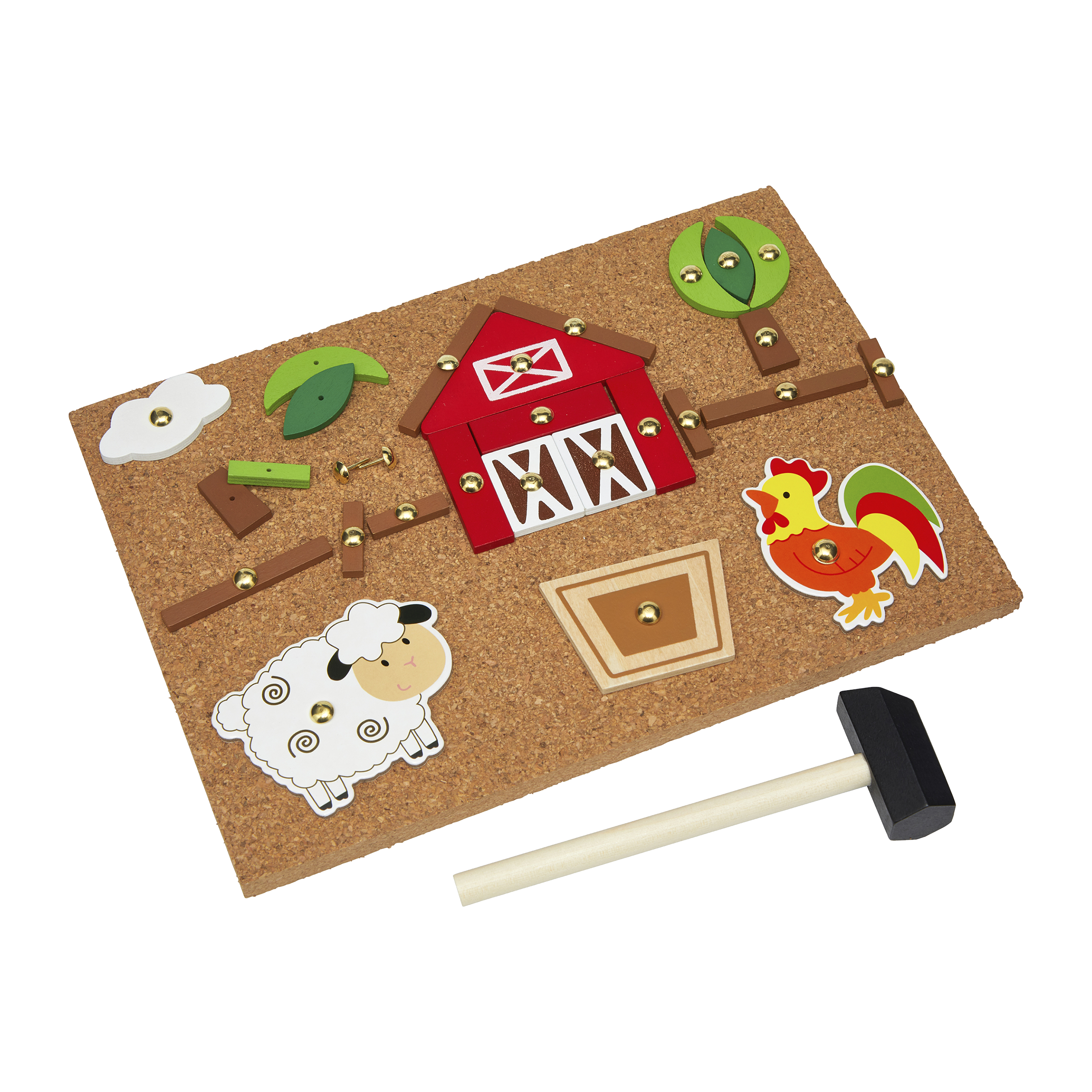 • obsah: 79 dřevěných destiček, 9 součástek ke statku, 1 korková deska, 1 kladivo, 80 hřebíků a 8 herních předloh