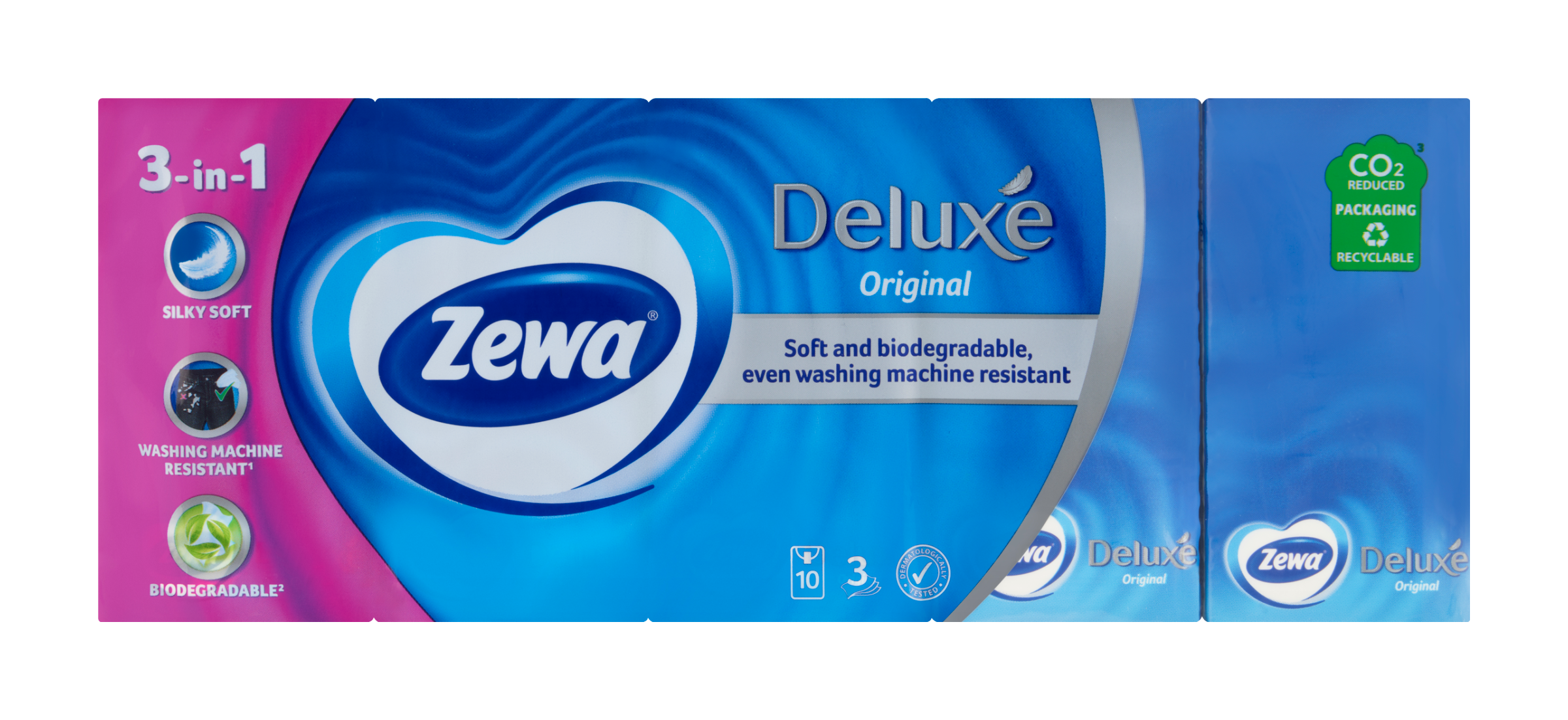 Tyto třívrstvé kapesníčky jsou příjemně jemné a zároveň pevné, takže potěší opravdu každého. Bez jakékoli parfemace, v klasické bílé barvě. Pokud kapesníky Zewa omylem vyperete v pračce tak se nemusíte bát, nerozpadnou se, jsou totiž odolné vůči praní, avšak i přesto si zachovávají svou jemnost. Obal produktu je recyklovatelný. Tyto kapesníčky se mohou chlubit certifikací FSC, to znamená, že výrobek pochází ze šetrně obhospodařovaných lesů.