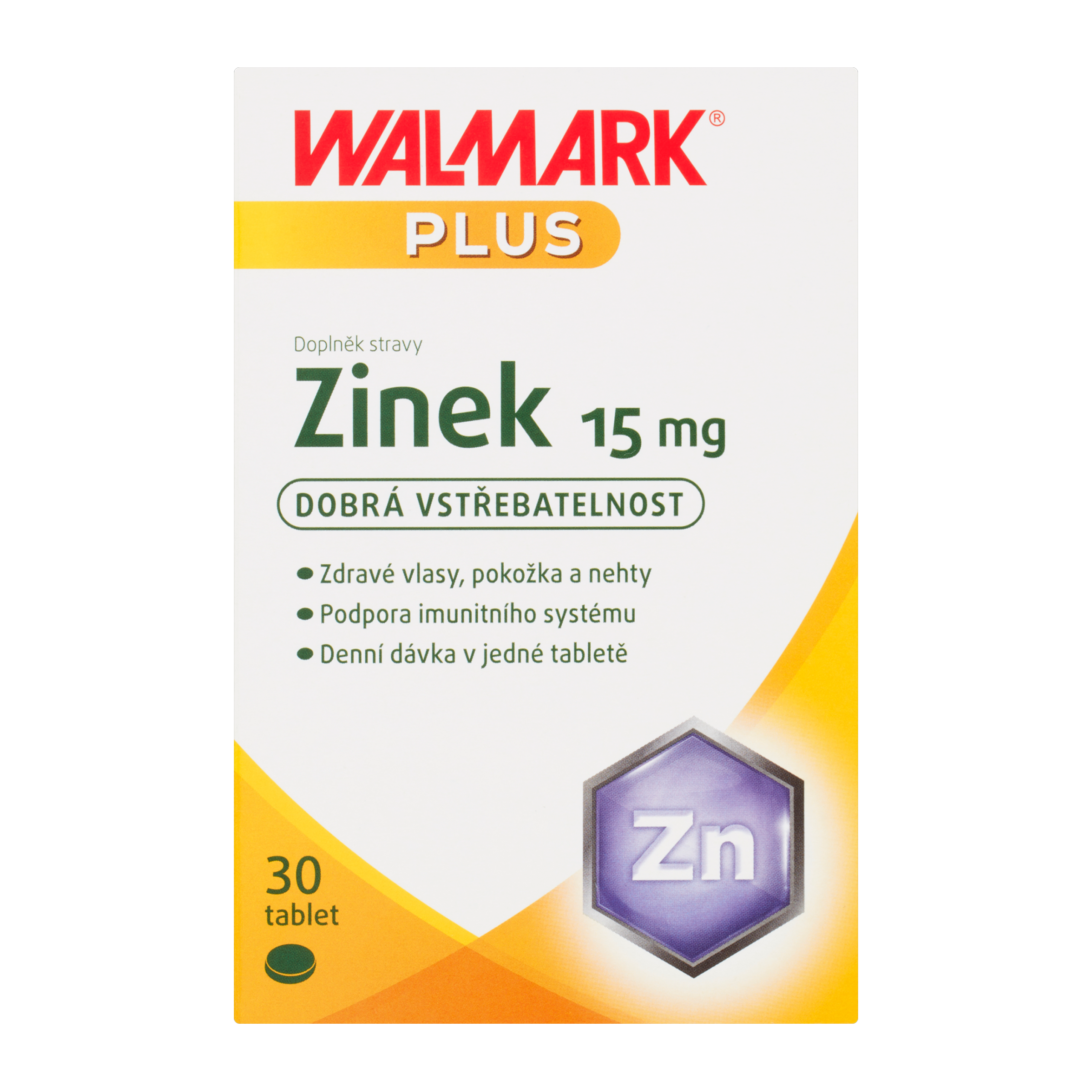 Zinek je minerální látkou důležitou pro celou řadu biologických funkcí a je složkou mnoha enzymů v lidském těle. Účinky zinku: přispívá k udržení normálního stavu vlasů, nehtů, pokožky a kostí. Přispívá k ochraně buněk před oxidativním stresem způsobeným volnými radikály. Walmark Zinek 15 mg: dobře vstřebatelná organická forma zinku vázaného v glukonátu.