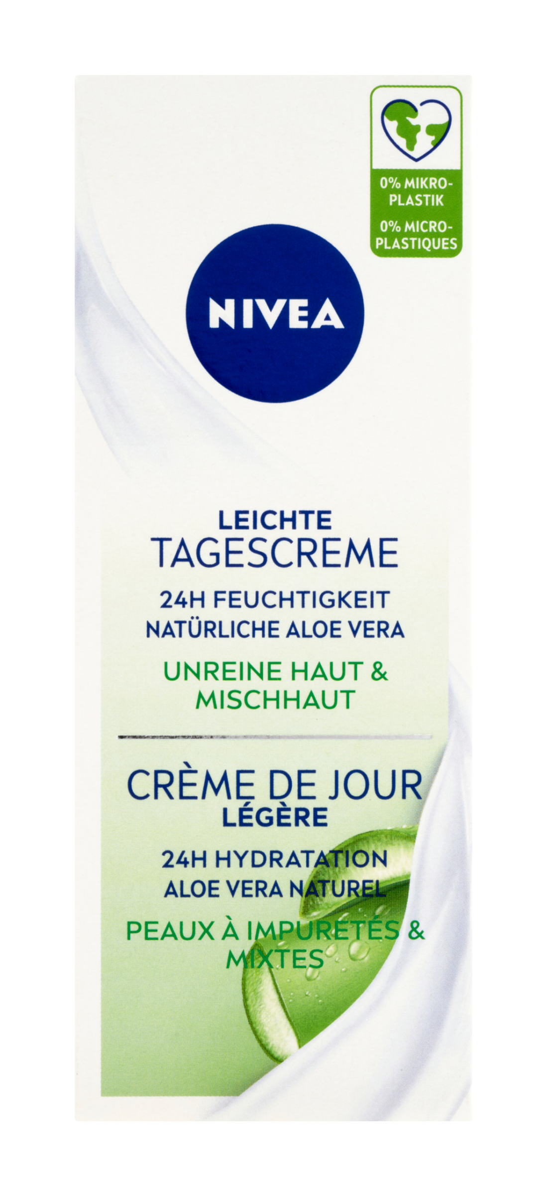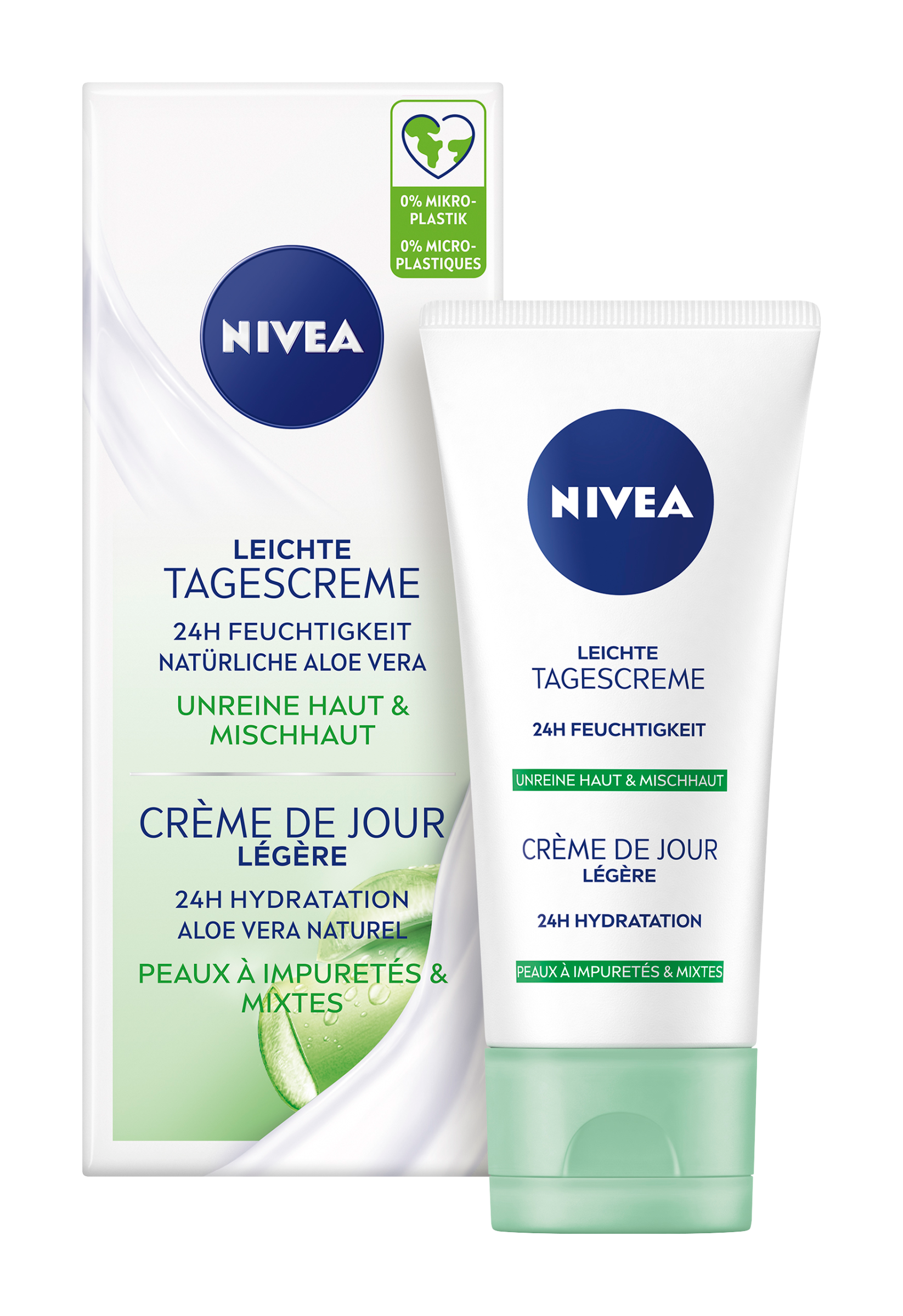 Složení s Nivea® Moisture Care komplexem, přírodním aloe vera a minerály: - Intenzivně hydratuje pleť až 24 hodin, respektuje její přirozenou úroveň hydratace. - Zmatňuje pleť, redukuje kožní maz a snižuje lesk pleti. Veganské složení* bez mikroplastů. *neobsahuje ingredience živočišného původu.
