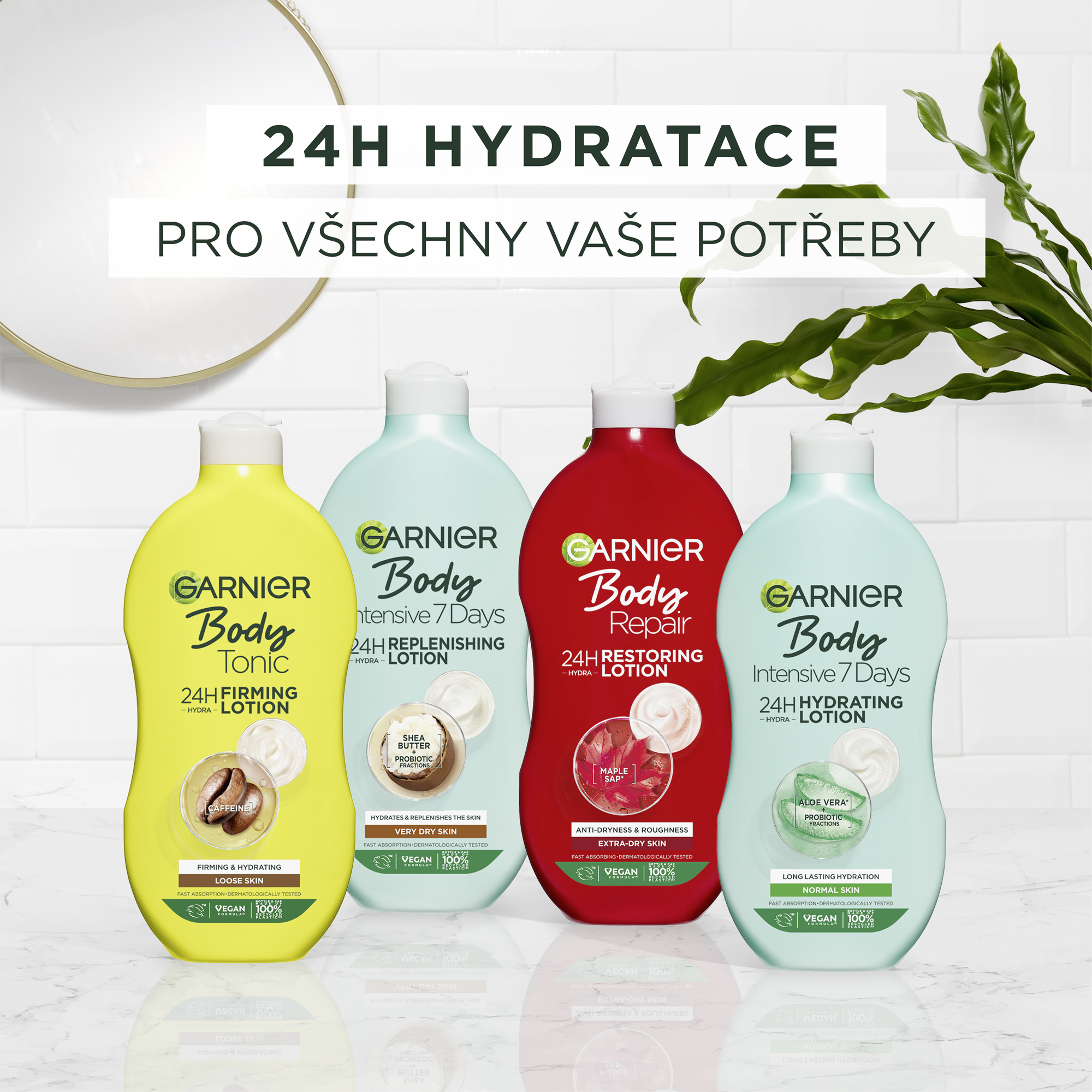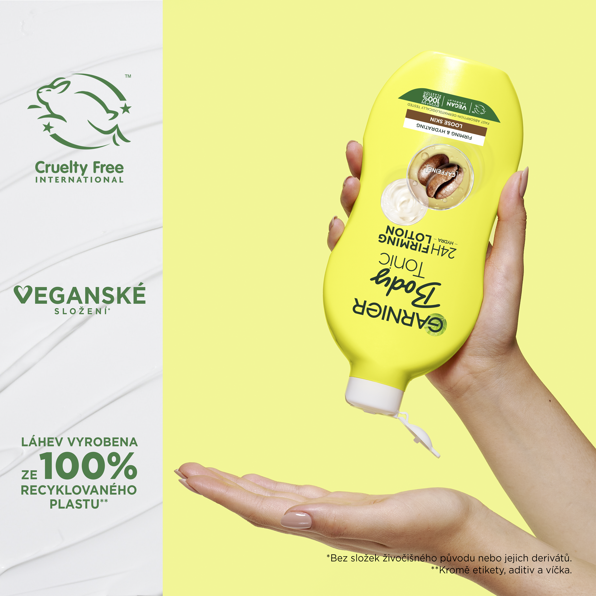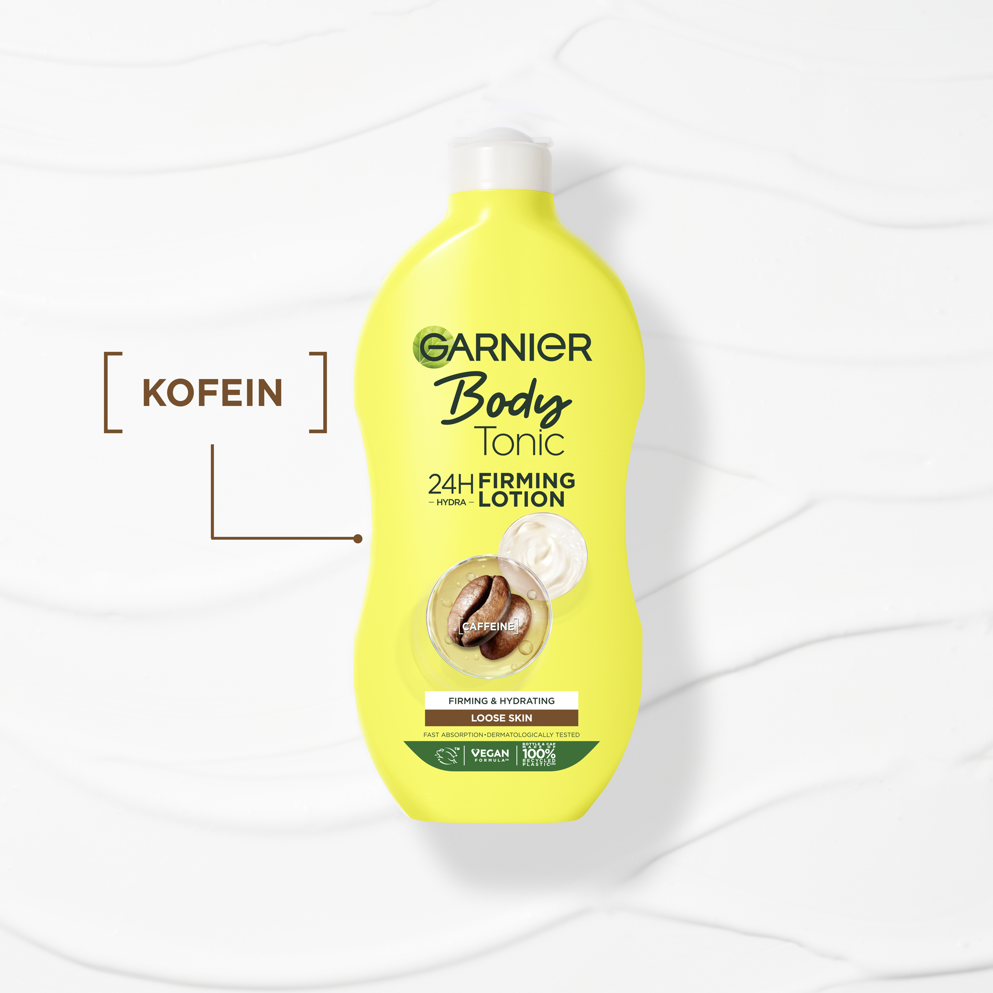 Garnier Body Tonic zpevňující mléko s kofeinem poskytuje 24hodinovou hydrataci. Viditelně vypíná, posiluje a okamžitě zpevňuje pokožku.