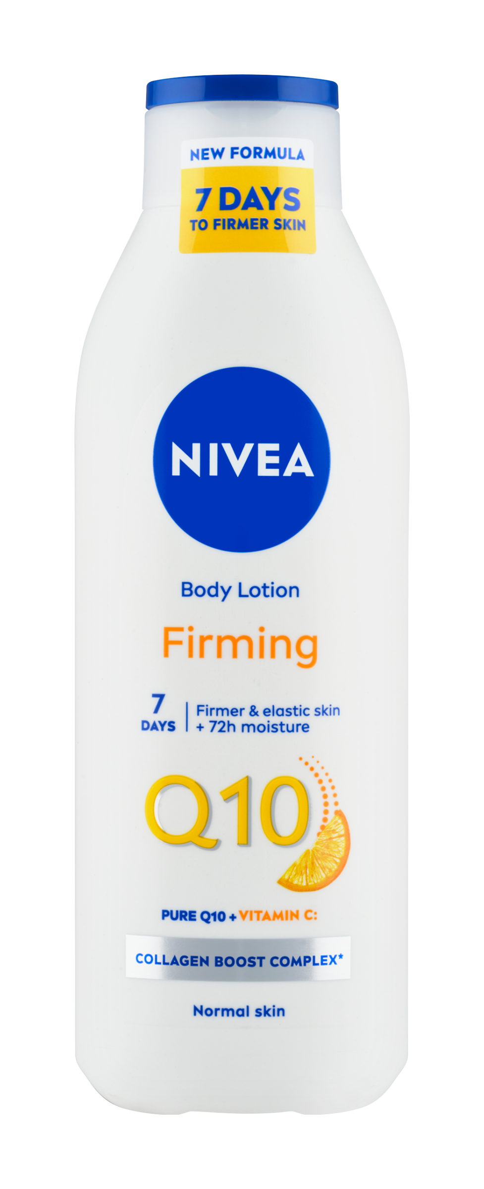 Nivea® Zpevňující tělové mléko Q10 pro normální pokožku. Vylepšené složení s kolagen booster komplexem*, který obsahuje čistý koenzym Q10 a vitamín C zajistí 72h hydrataci pokožky - klinicky prokázáno. Znatelně pokožku zpevňuje a zlepšuje její pružnost již za 7 dní. *komplex testován in-vitro na kožních buňkách.