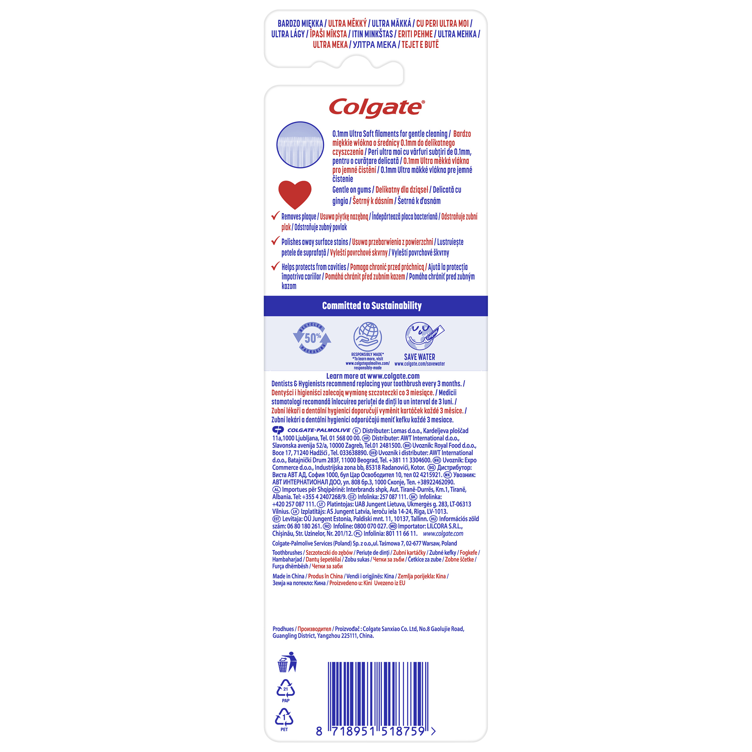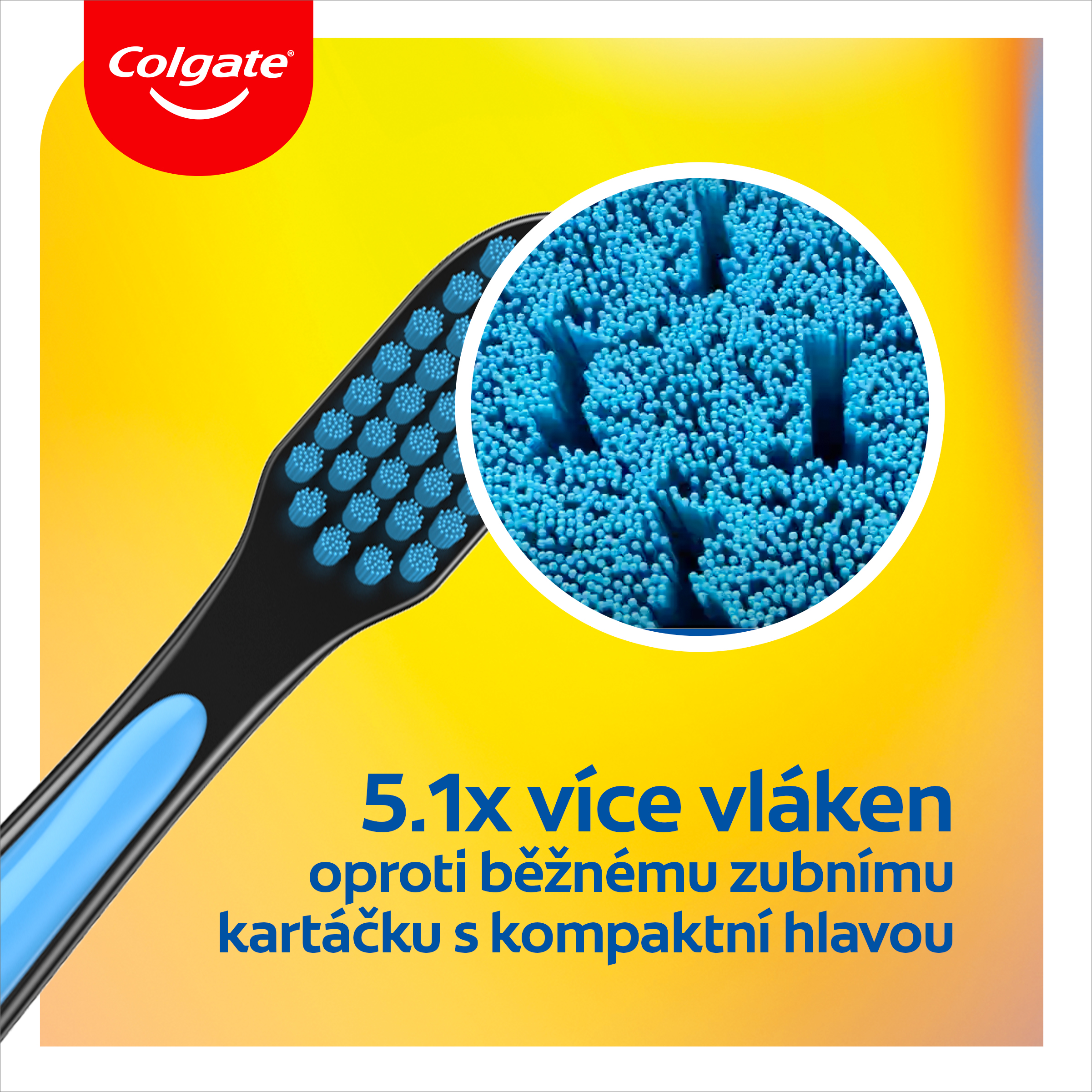 Zubní kartáček Colgate Ultra Soft Design Edition se zářivými a barevnými POP Art vzory je vyroben z více než 5000 ultrajemných vláken o průměru 0.1 mm s vysokou hustotou, což zajišťuje šetrné, ale účinné čištění vašich zubů. Ultrakompaktní hlavice zubního kartáčku je navržena tak, aby se snadno dostala k zadním zubům a podpořila tak celkový účinek čištění zubů.