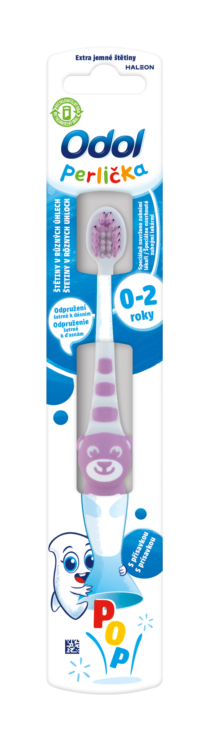 První zoubky vašeho dítěte jsou důležité, protože drží místo pro zuby stálé, které jsou již připravené v dásních. Kartáčky Odol perlička jsou speciálně navržené zubními lékaři pro děti ve věku 0-2 roky k čištění jejich prvních zoubků. - Extra jemné štětiny pomáhají chránit citlivé dásně vašich dětí. - Štětiny zastřižené v různé délce a úhlech efektivně vyčistí zub po celé jeho ploše. - Snadno uchopitelná rukojeť pro snadnější čištění.