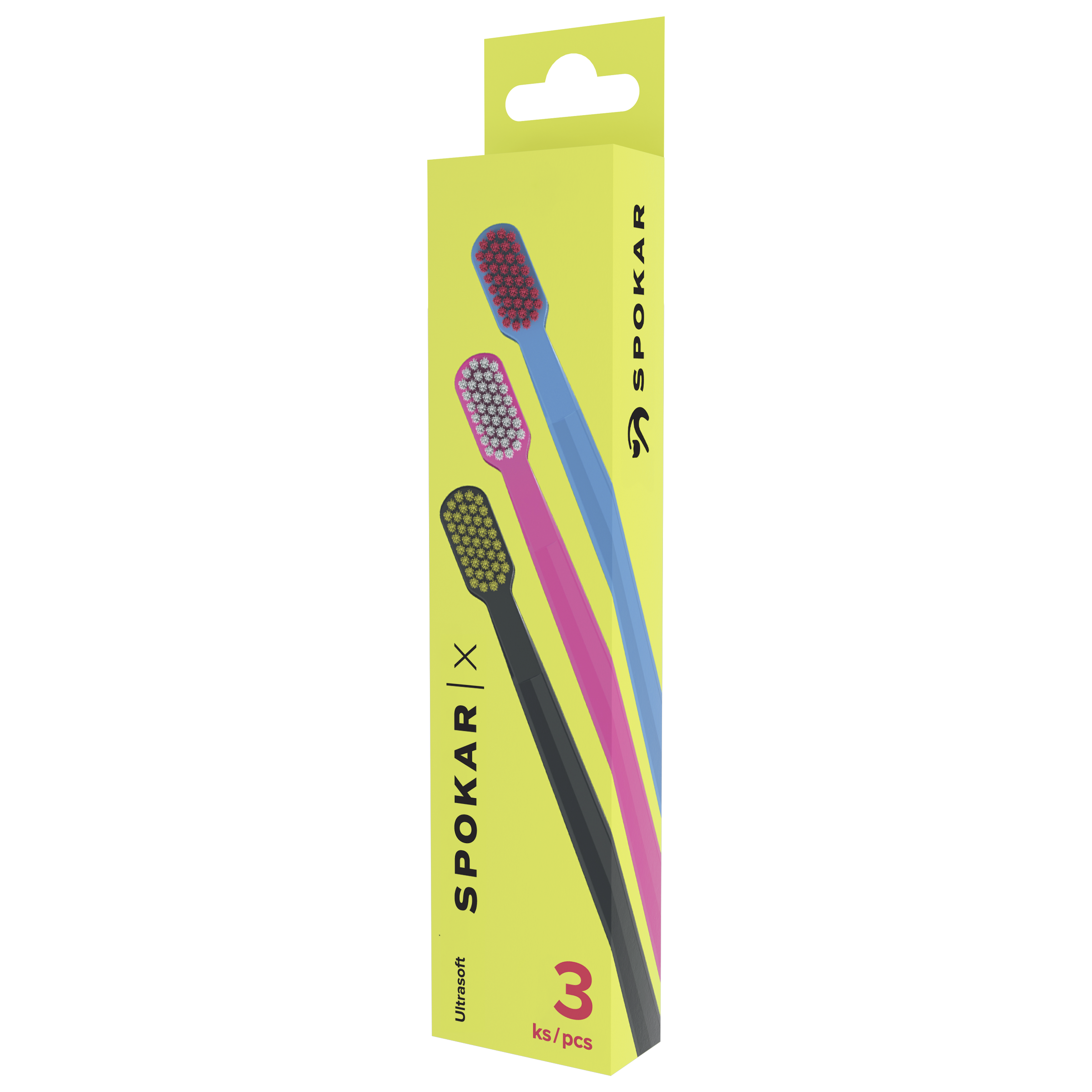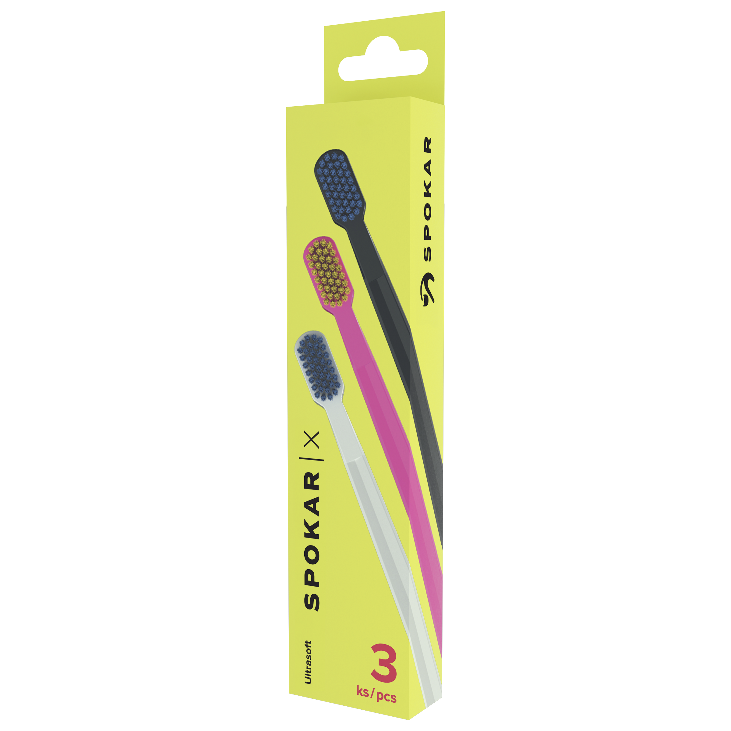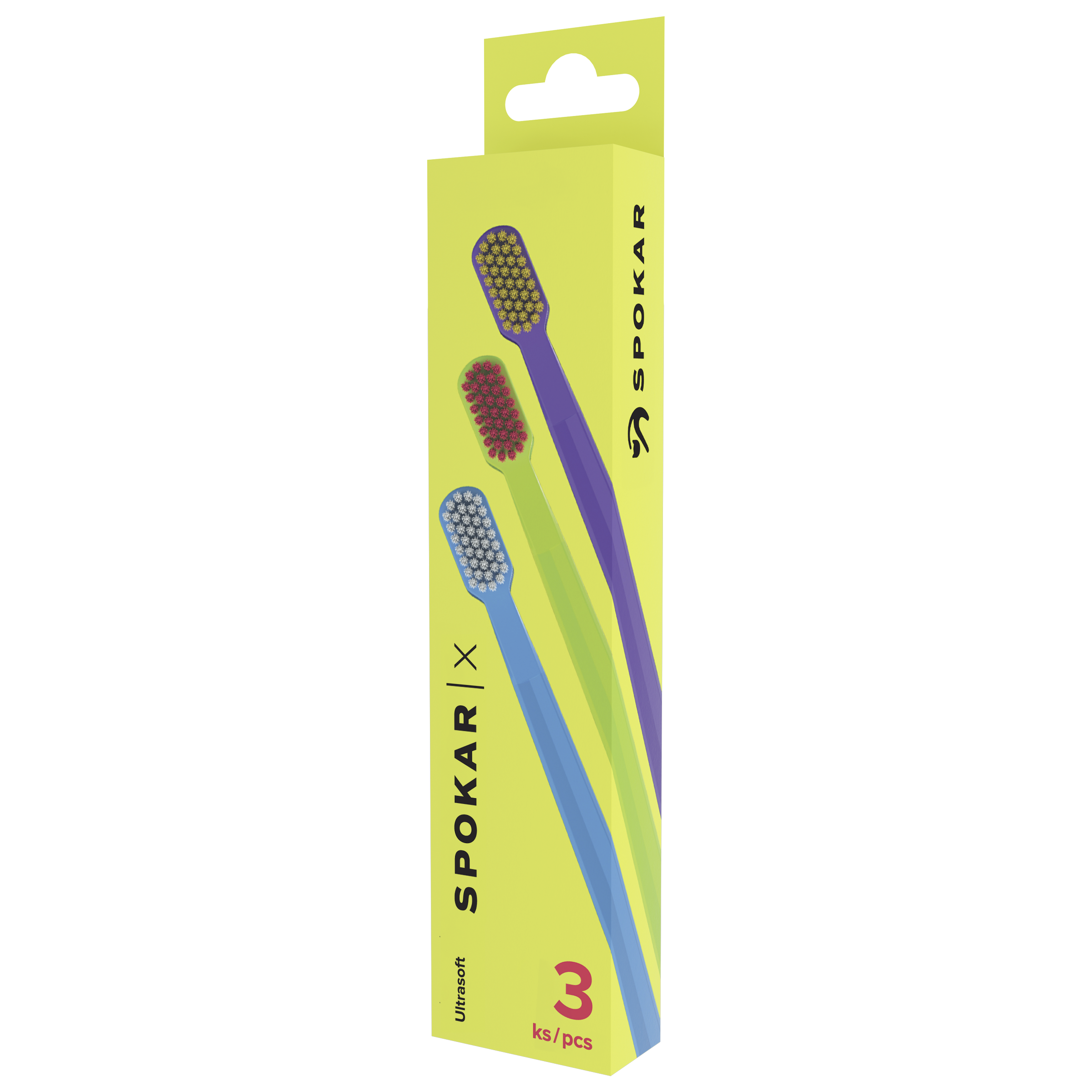 Oblíbený zubní kartáček SPOKAR X je nyní nabízen také v praktickém balení po třech kusech. Papírový obal spolehlivě zajistí ochranu kartáčků při skladování a poté ho lze snadno recyklovat.