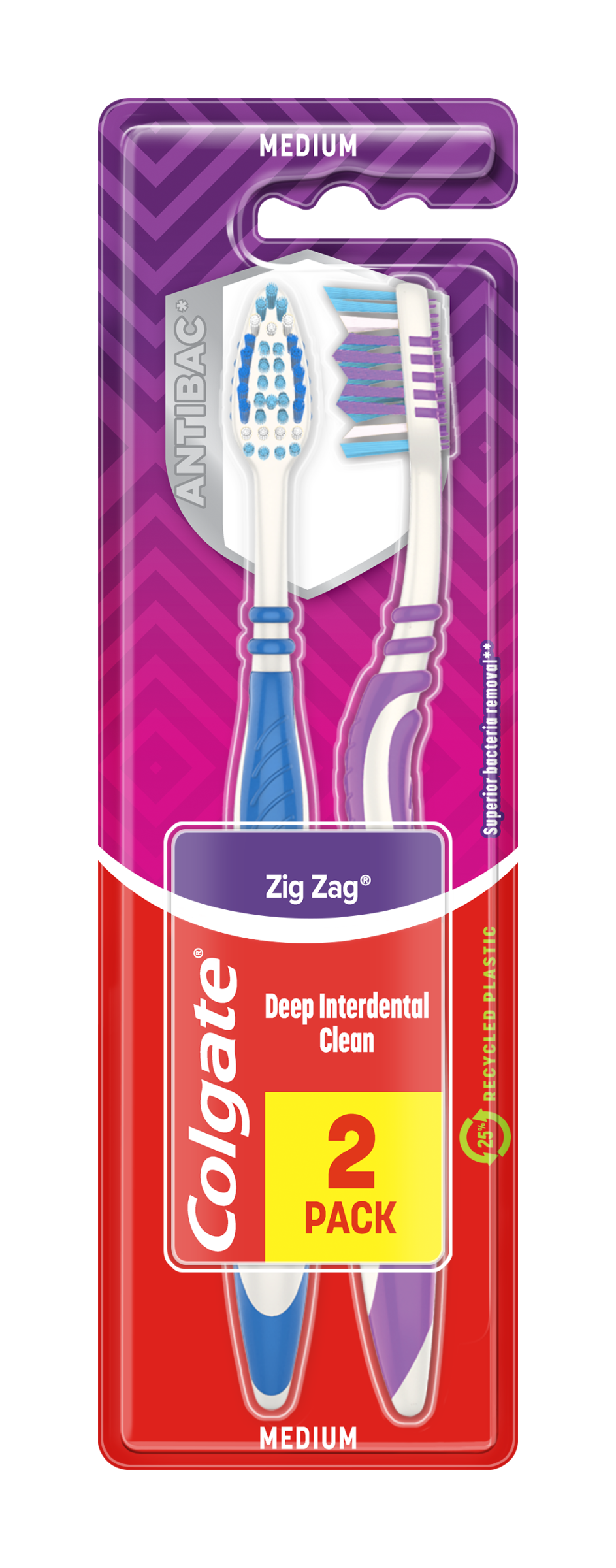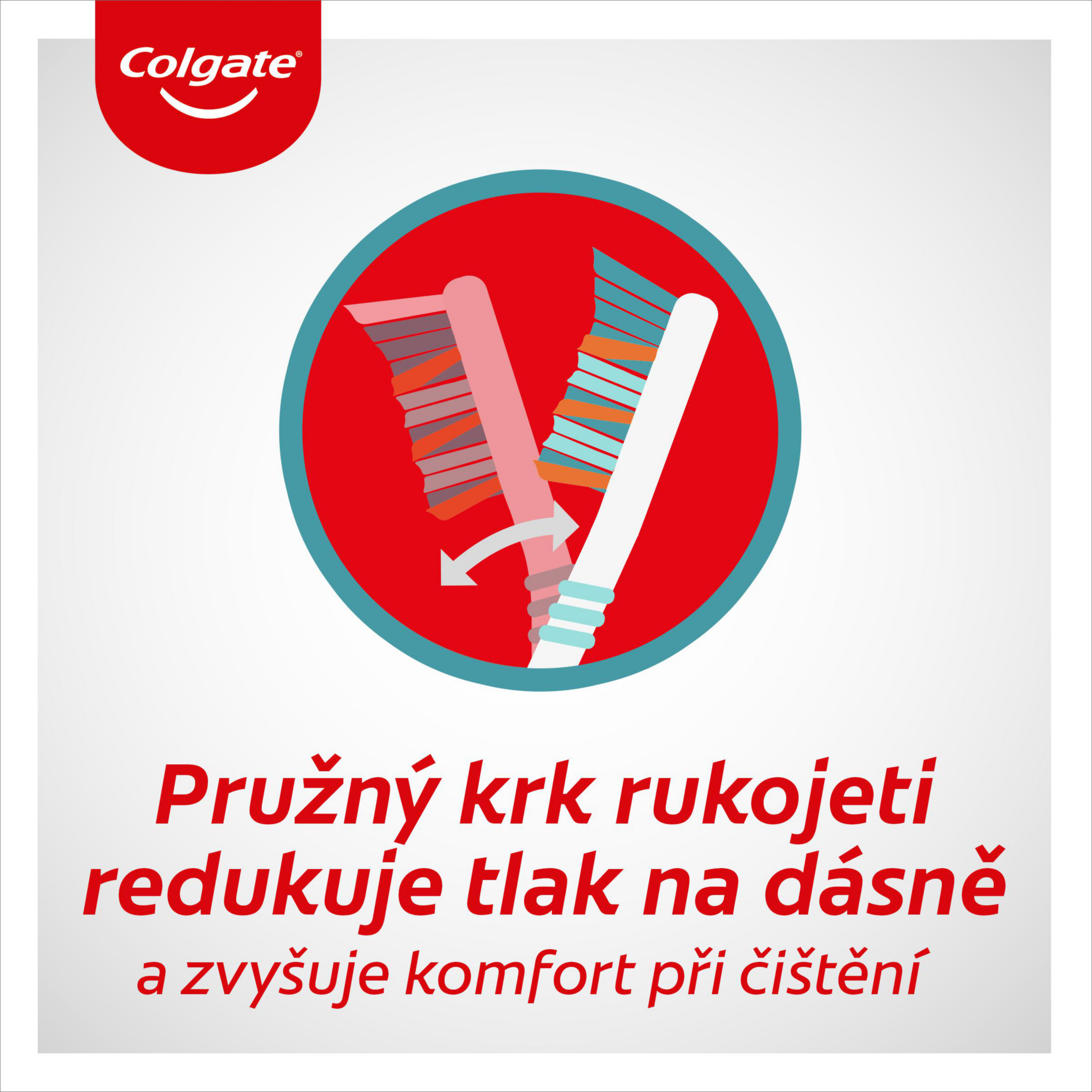 Zubní kartáček Colgate Zig Zag byl navržen pro důkladné čištění pomocí příčných vláken, které dosáhnou hluboko mezi zuby. Ruční zubní kartáček čistí zuby, jazyk, sliznice tváří a dásně, abyste měli svá ústa zdravá. Zubní kartáček má také pružný krček, čímž je čištění ještě pohodlnější.