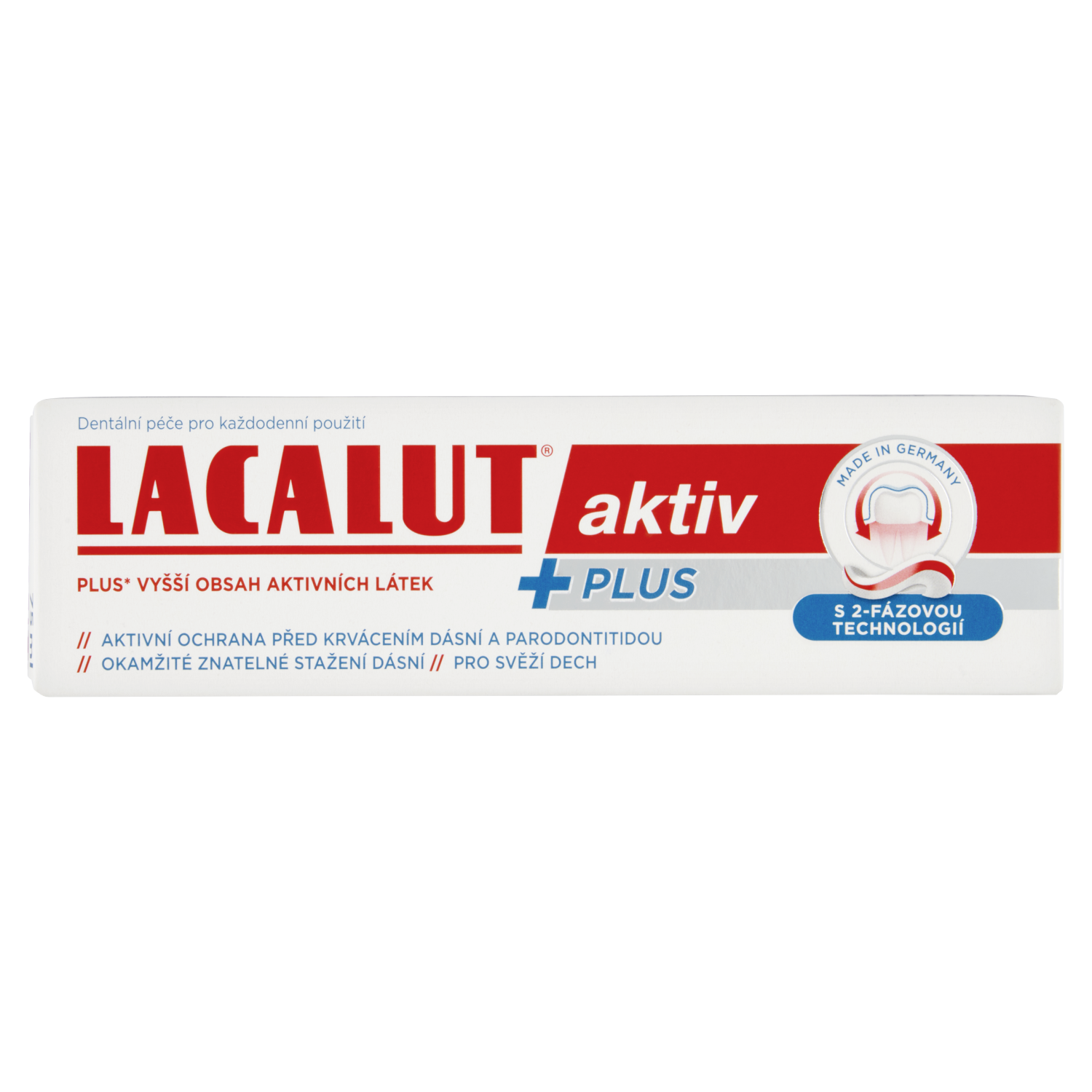 Lacalut® aktiv Plus je speciálně navržený pro ochranu před parodontitidou a krvácením dásní. Pomáhá zpevňovat dásně a předcházet jejich onemocněním. Nabízí 12hodinovou dlouhodobou ochranu a inhibuje tvorbu biofilmu.
