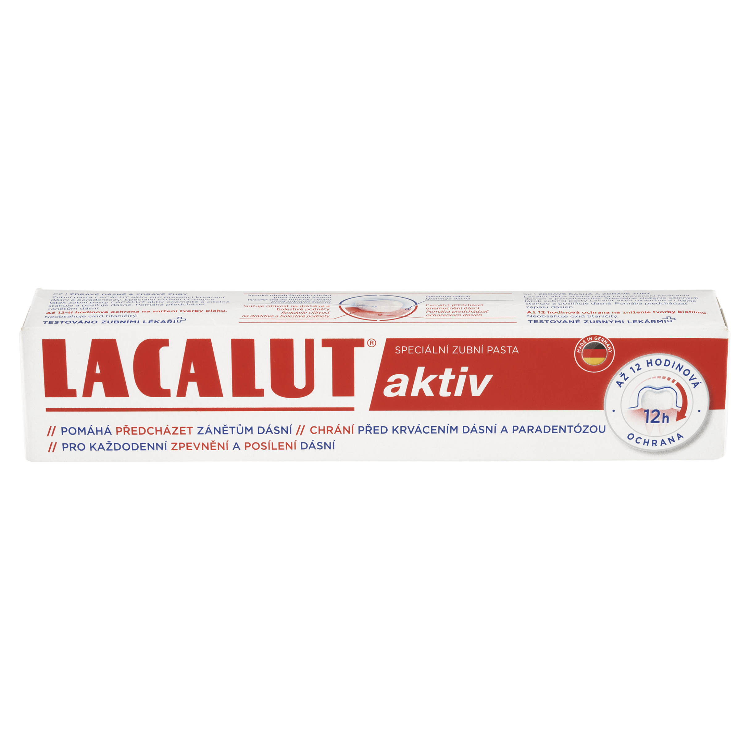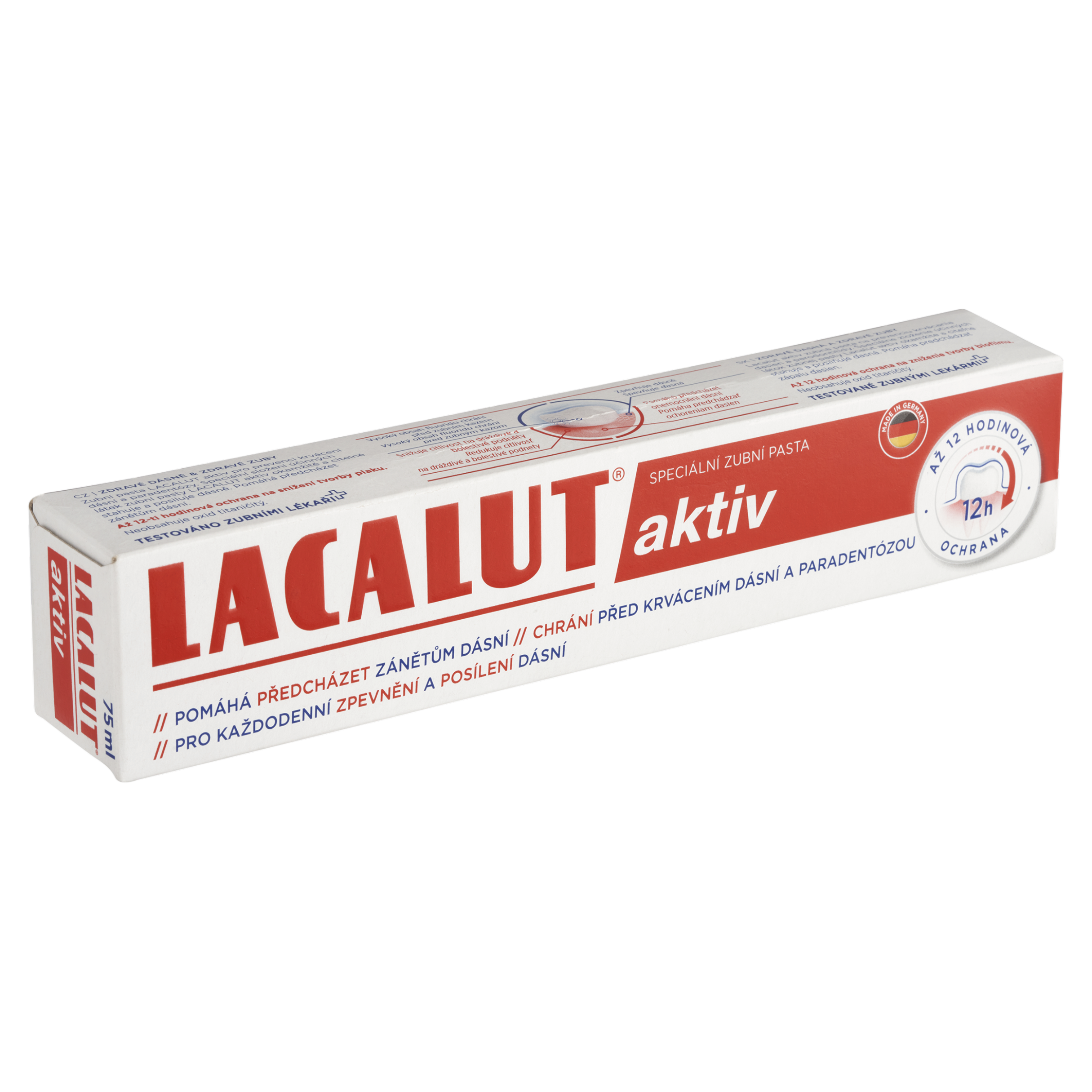 Čistěte si zuby ráno a večer zubní pastou Lacalut aktiv. RDA: střední abrazivita. Pro dospělé a mladistvé od 12 let.