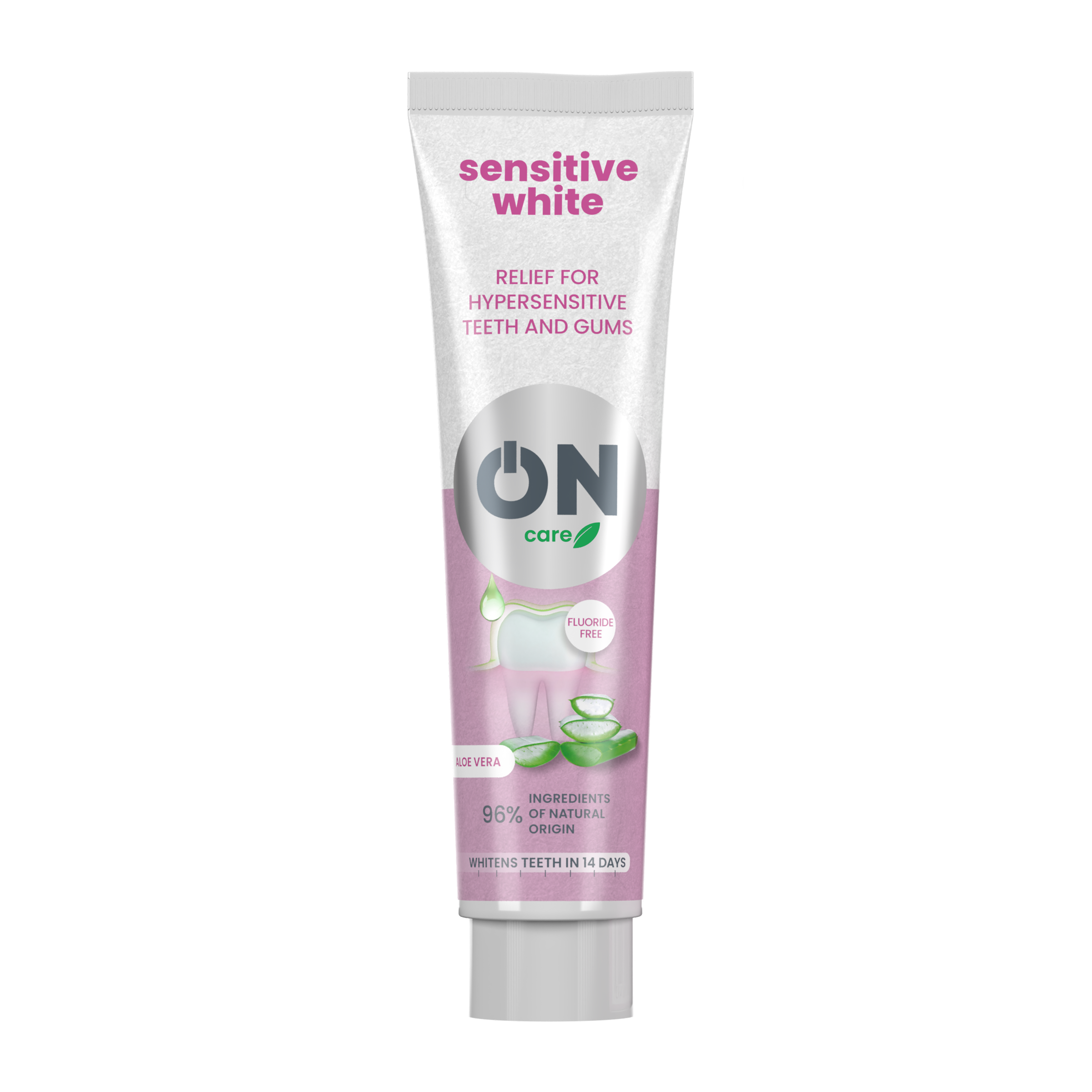 Přírodní zubní pasta přináší úlevu přecitlivělým zubům a zklidňuje podrážděné dásně. Obsahuje šťávu z aloe (hydratuje ústní sliznici), extrakt ze zeleného čaje (osvěžuje), sloučeninu draslíku (zabraňuje přecitlivělosti) a glycerofosfát vápenatý (posilňuje sklovinu).