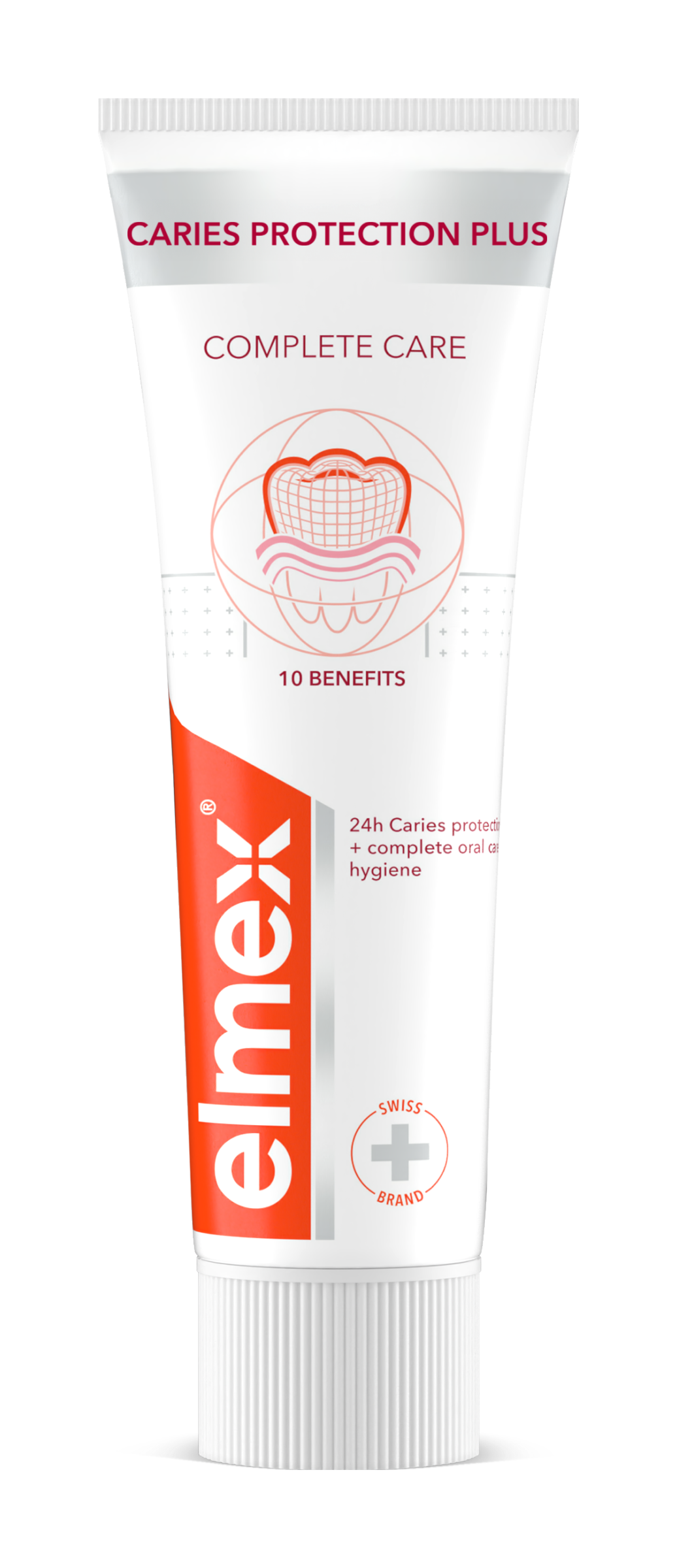 Pečujte efektivně o svá ústa pomocí zubní pasty elmex® Caries Protection Plus Complete Care, která pomáhá předcházet řadě problémů dutiny ústní. elmex® Caries Protection Plus Complete Care obsahuje klinicky ověřenou technologii fluoridu cínatého a fosforečnanu zinečnatého s vysokou účinností v ochraně proti zubnímu kazu při použití dvakrát denně. Zubní pasta při každodenním použití také pomáhá remineralizovat sklovinu a pomáhá chránit před zubním kazem, oslabením zubní skloviny, zubním kamenem , citlivostí zubů a podrážděním dásní. Pomáhá rovněž obnovovat přirozenou bělost vašich zubů. Pečujte o své zuby a ústa pomocí zubní pasty elmex® Caries Protection Plus Complete Care.