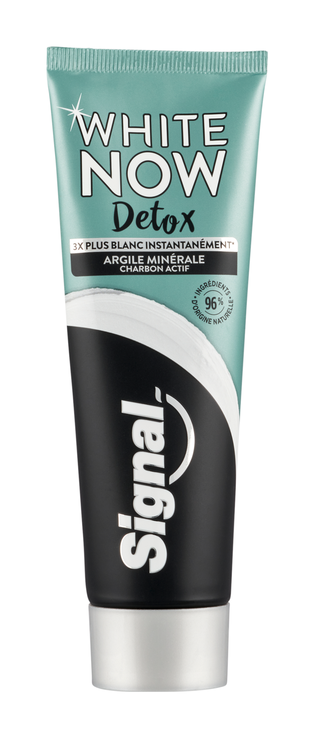 Signal White Now Detox Charcoal je váš nový denní detox, díky kterému se budete usmívat po celý den. Tato bělicí receptura na přírodní bázi kombinuje jíl s aktivním uhlím a přirozeně odstraňuje skvrny ze zubů, zatímco je jemná ke sklovině a dává zubům čistící detox. Vylepšená technologie White Now pomáhá k odstranění nažloutnutí zubů a okamžitě * opticky vybělí váš úsměv až o 3 odstíny! Klinicky ověřená receptura vyrobená z 96% ingrediencí přírodního původu obsahuje fluorid pro každodenní použití. Zubní pasta Signal White Now Charcoal přichází v tubě určené k recyklaci, obsahuje recyklovaný plast ** a je bez krabičky pro snížení množství odpadu. * Okamžitý a optický efekt je dočasný. Klinicky prokázáno u 61 subjektů. ** bez víčka.
