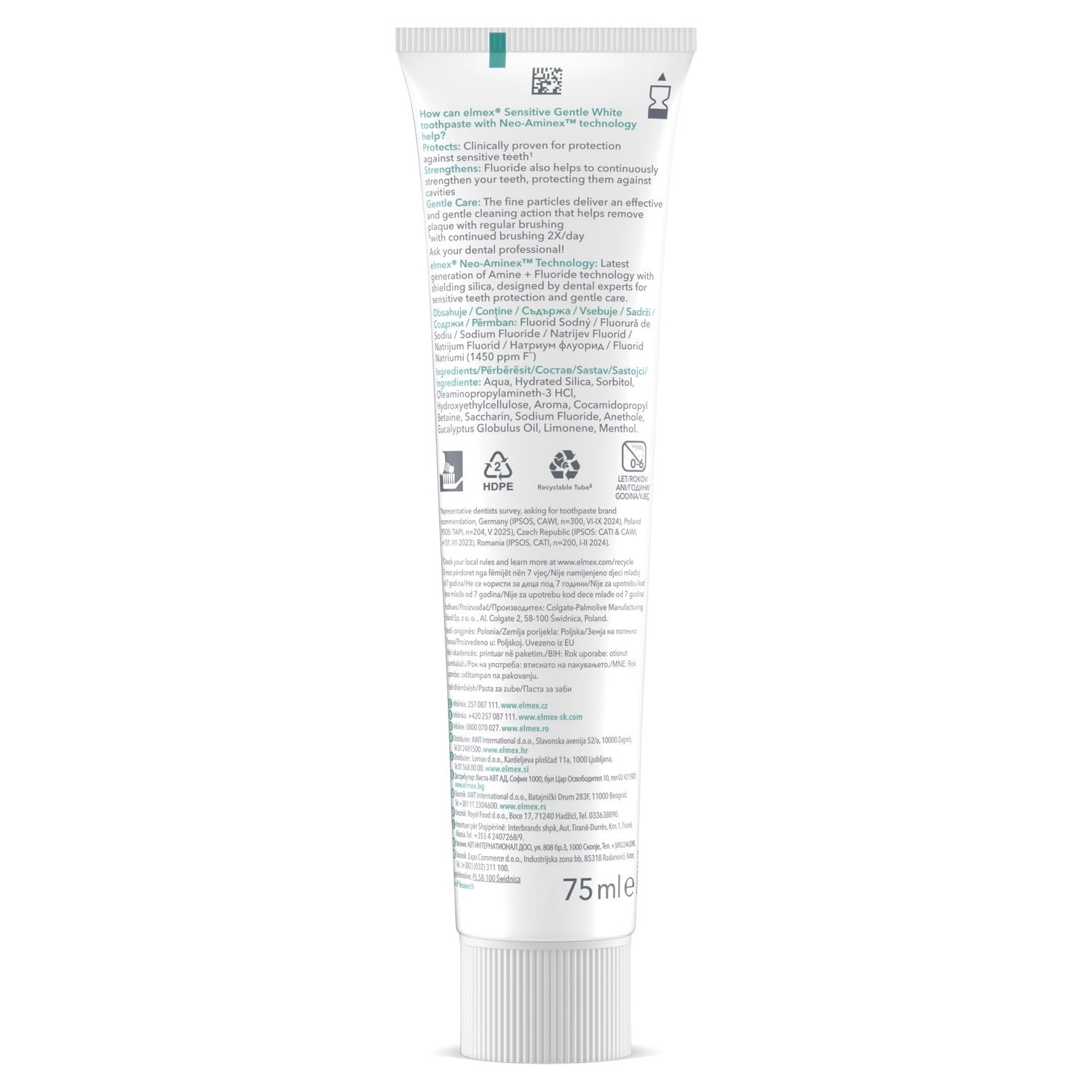 Kromě jemného čištění a ochrany má zubní pasta elmex® Sensitive Gentle White speciální čisticí složení, které šetrně a účinně odstraňuje povrchové skvrny a pomáhá obnovit přirozenou bělost vašich zubů. S ohledem na životní prostředí má tato zubní pasta veganské složení a dodává se v tubě, kterou můžete po spotřebování recyklovat. Se zubní pastou elmex®Sensitive Gentle White můžete nyní získat ochranu, kterou potřebujete. *Při pravidelném čištění zubů 2x denně.