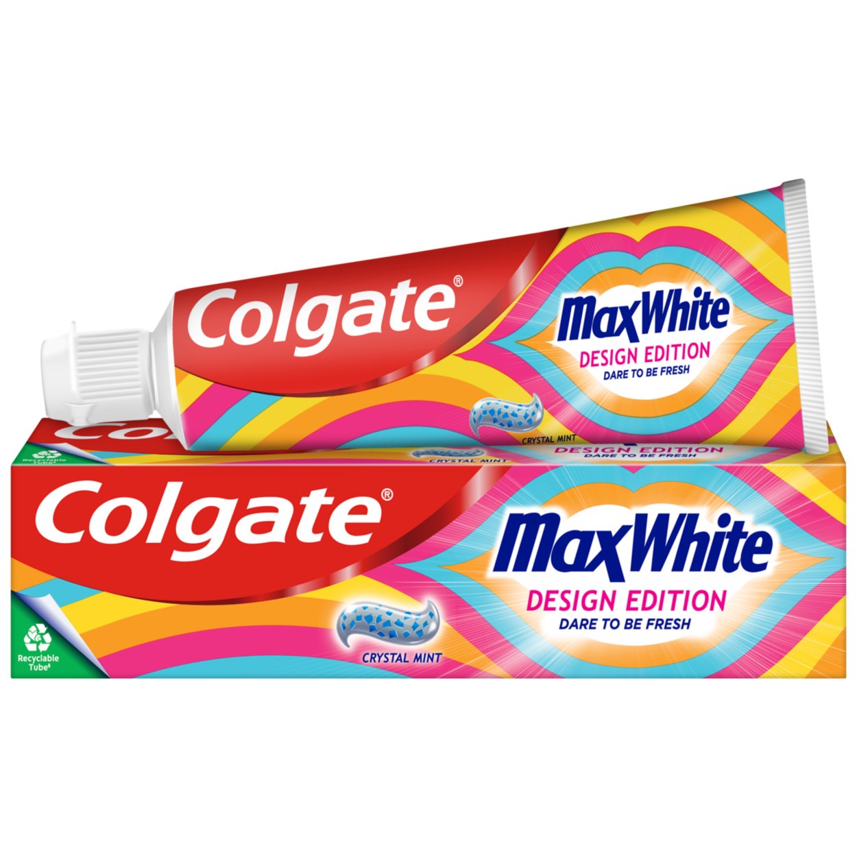 Zubní pasta Colgate Max White Design Edition přináší ohromný punc svěžesti s technologií FreshFX pro 10× chladivější efekt polibků*, takže se můžete cítit sebejistě při přiblížení. Zubní pasta na bělení zubů také obnovuje přirozenou bělost pro skvělý úsměv. A co víc, tato bělící zubní pasta také chrání před zubním kazem, takže víte, že chráníte své zuby při každém čištění. Nepřestávejte a osvěžte se!