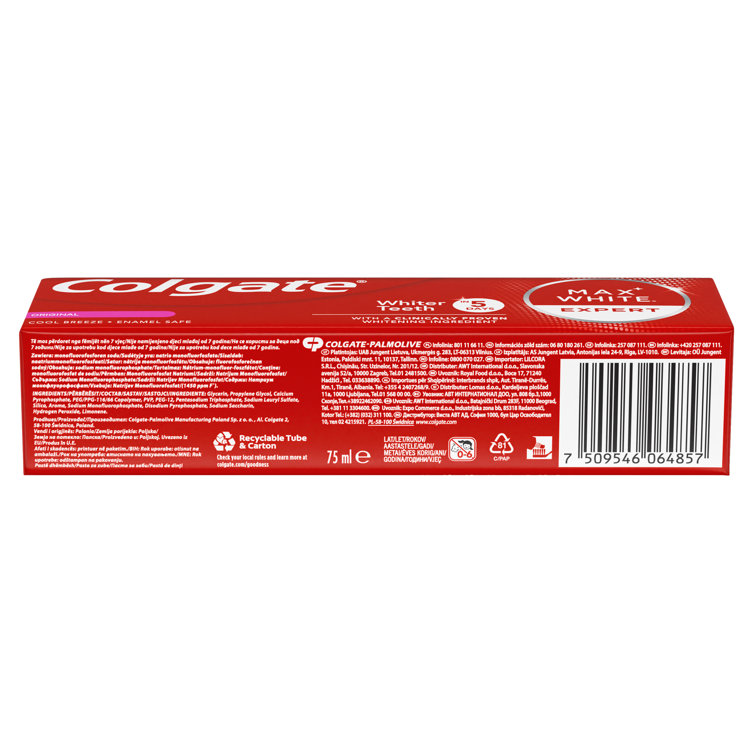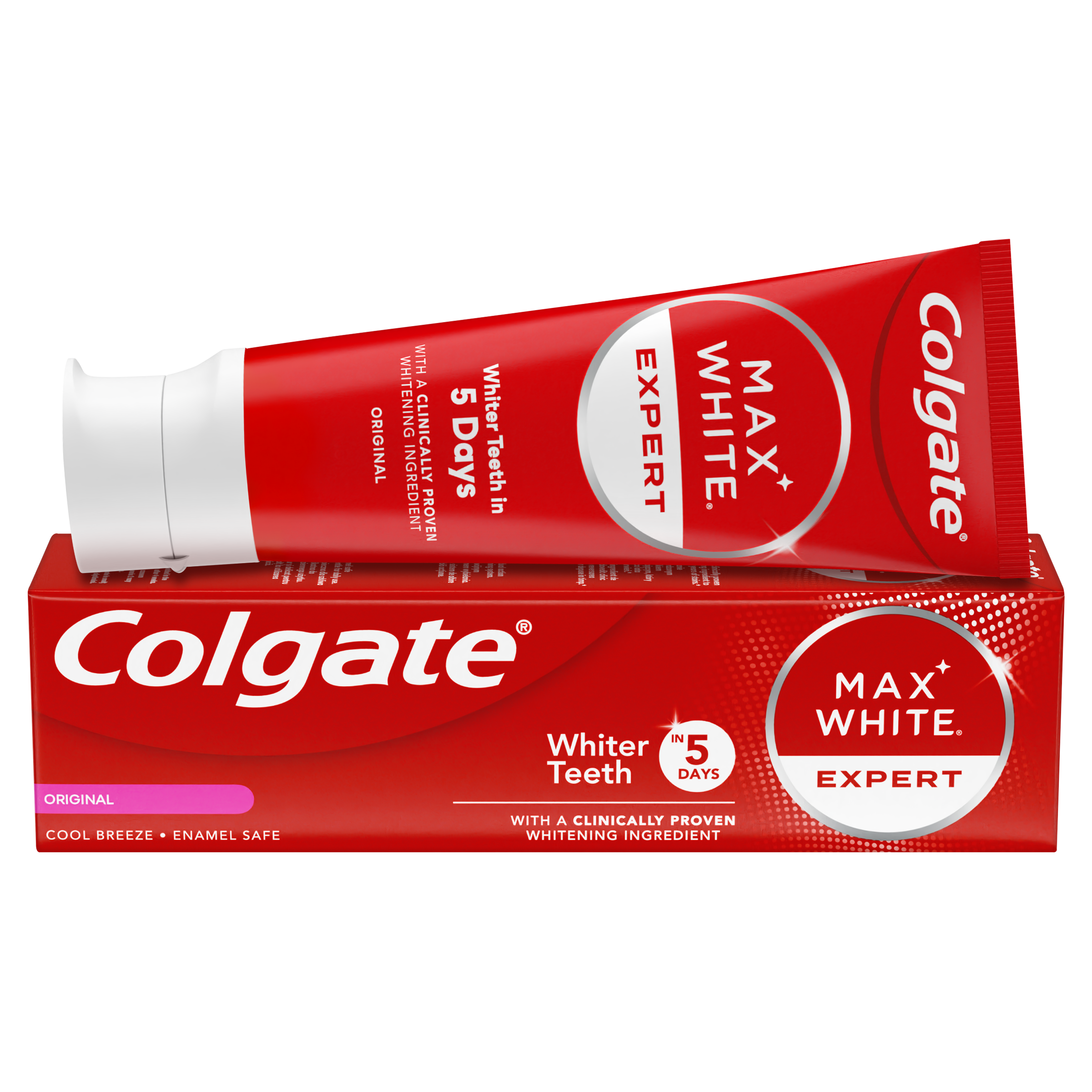 Předveďte oslnivý, bělejší úsměv, když si čistíte zubní pastou Colgate Max White Expert. Tato bělící zubní pasta dokáže zvrátit roky žloutnutí způsobené jídlem a pitím, když si čistíte zuby dvakrát denně. Důkaz můžete vidět už za pět dní. Jen další důvod k úsměvu.