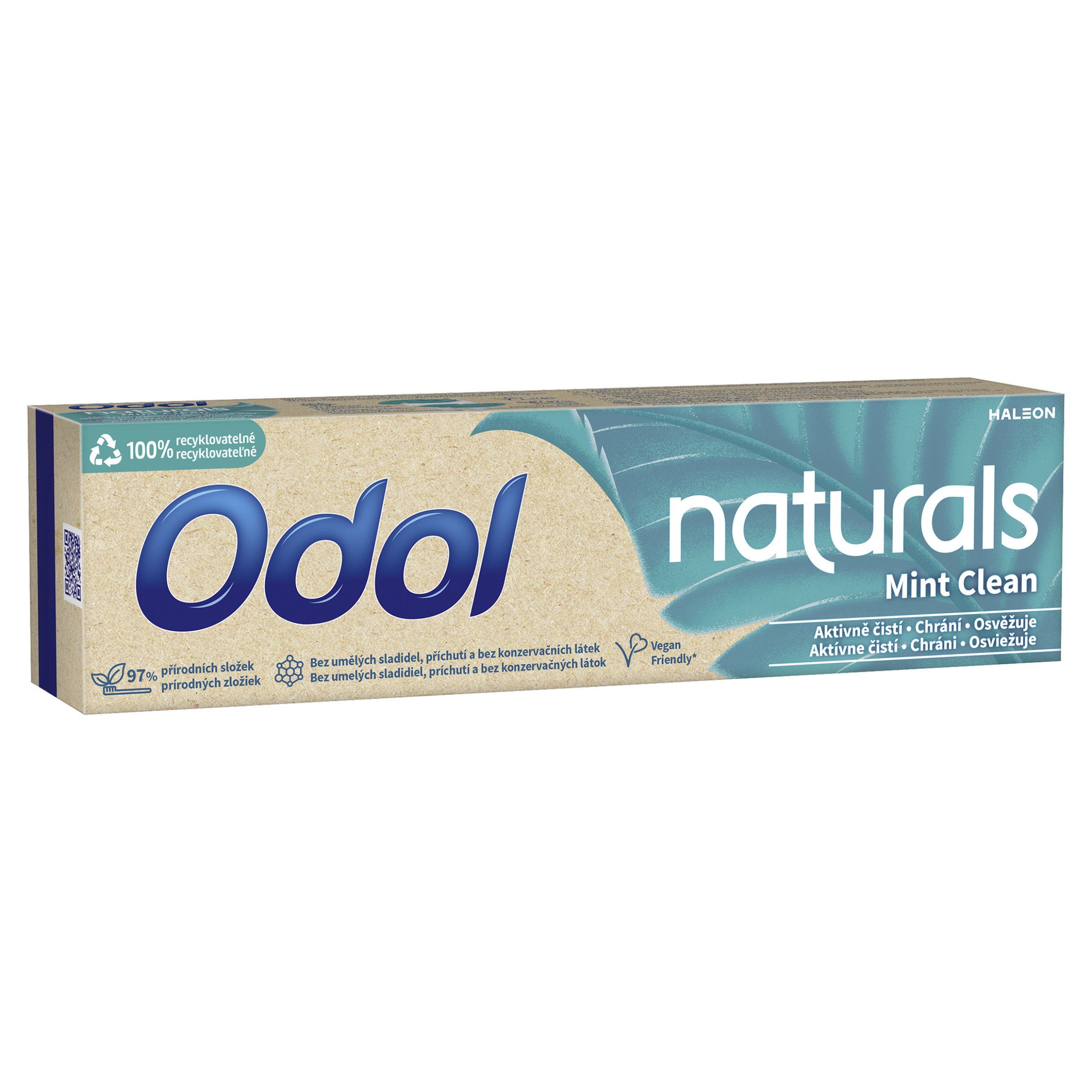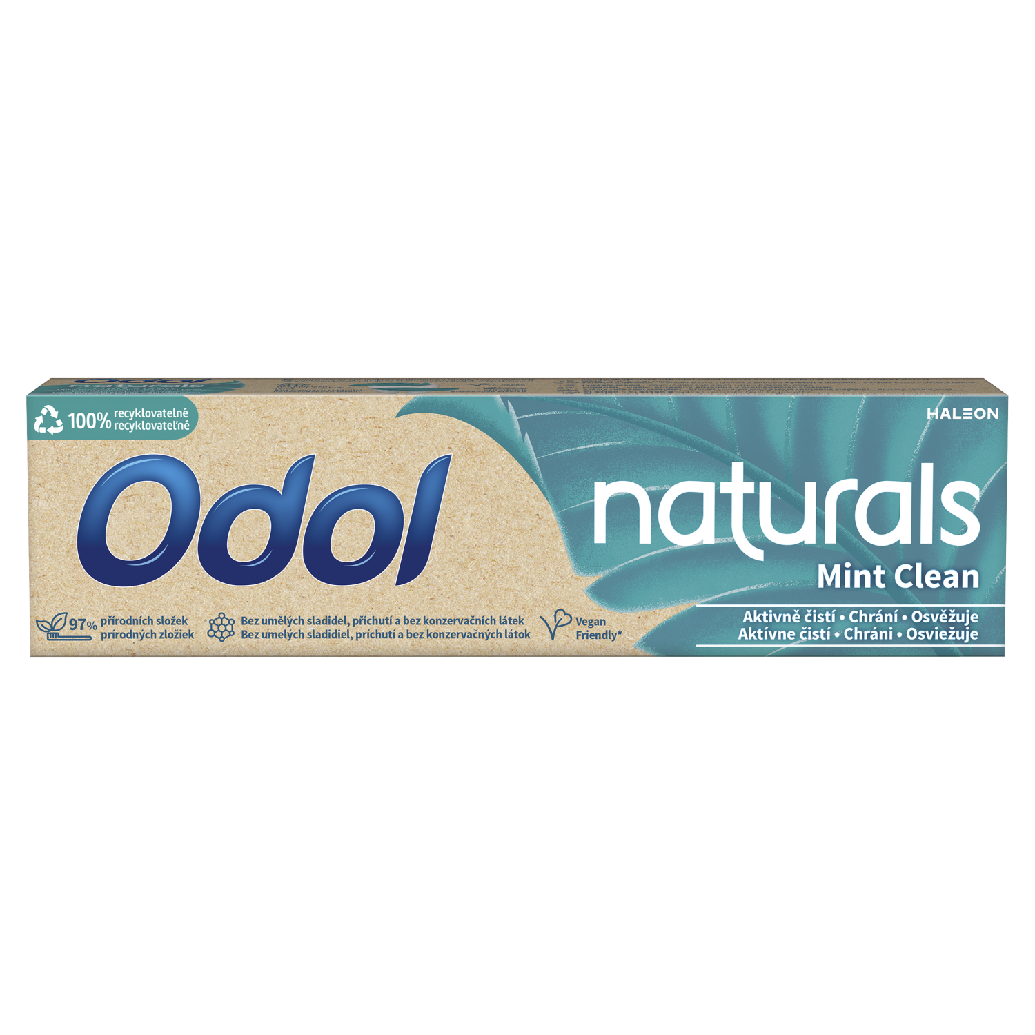 100% přírodní příchuť. Odol Mint Clean obsahuje naši jedinečnou směs přírodní máty peprné pro to pravé osvěžení. Odol naturals obsahuje 97 % přírodních složek. Tím splňuje náš příslib trojí ochrany - čisté zuby, zdravé dásně** a svěží dech.