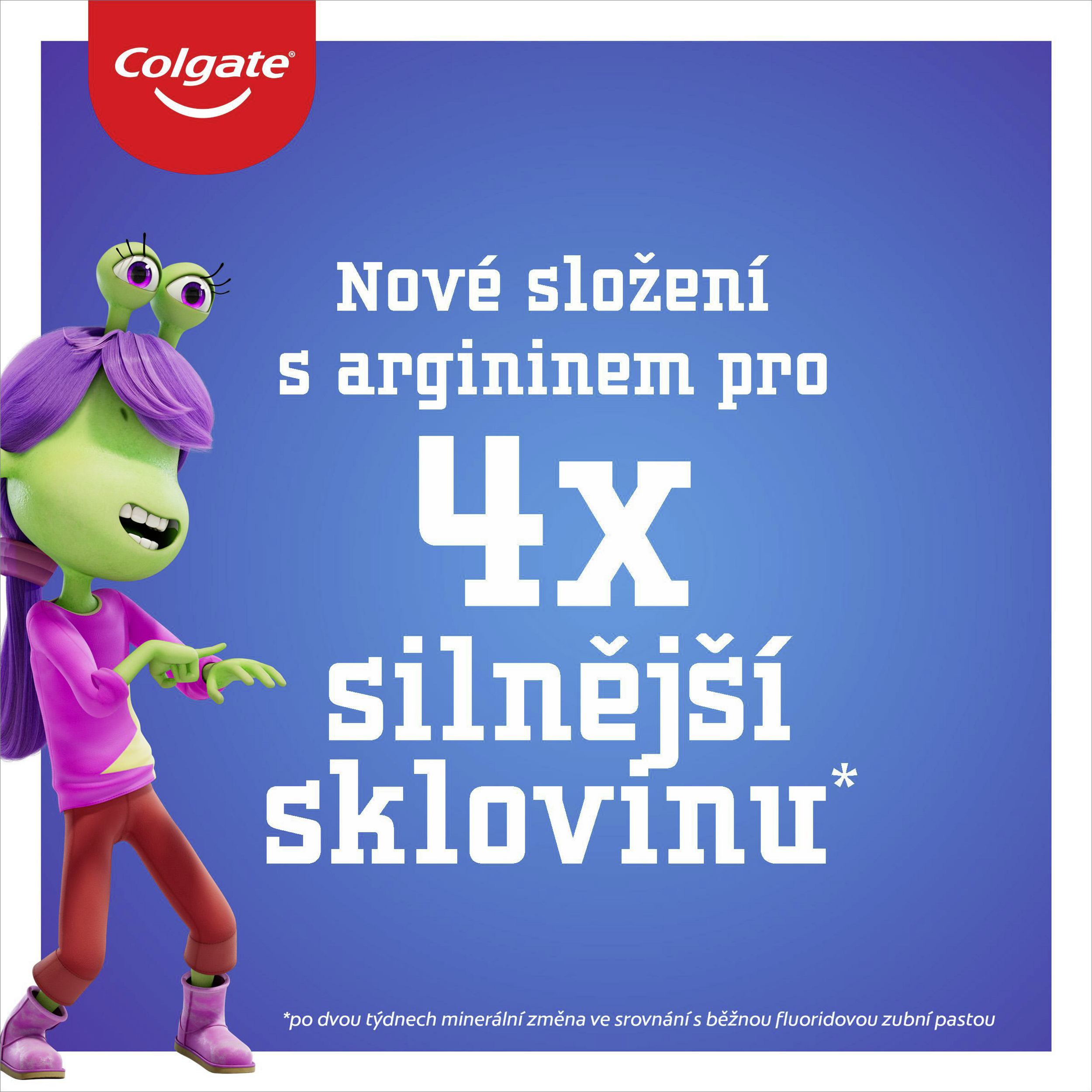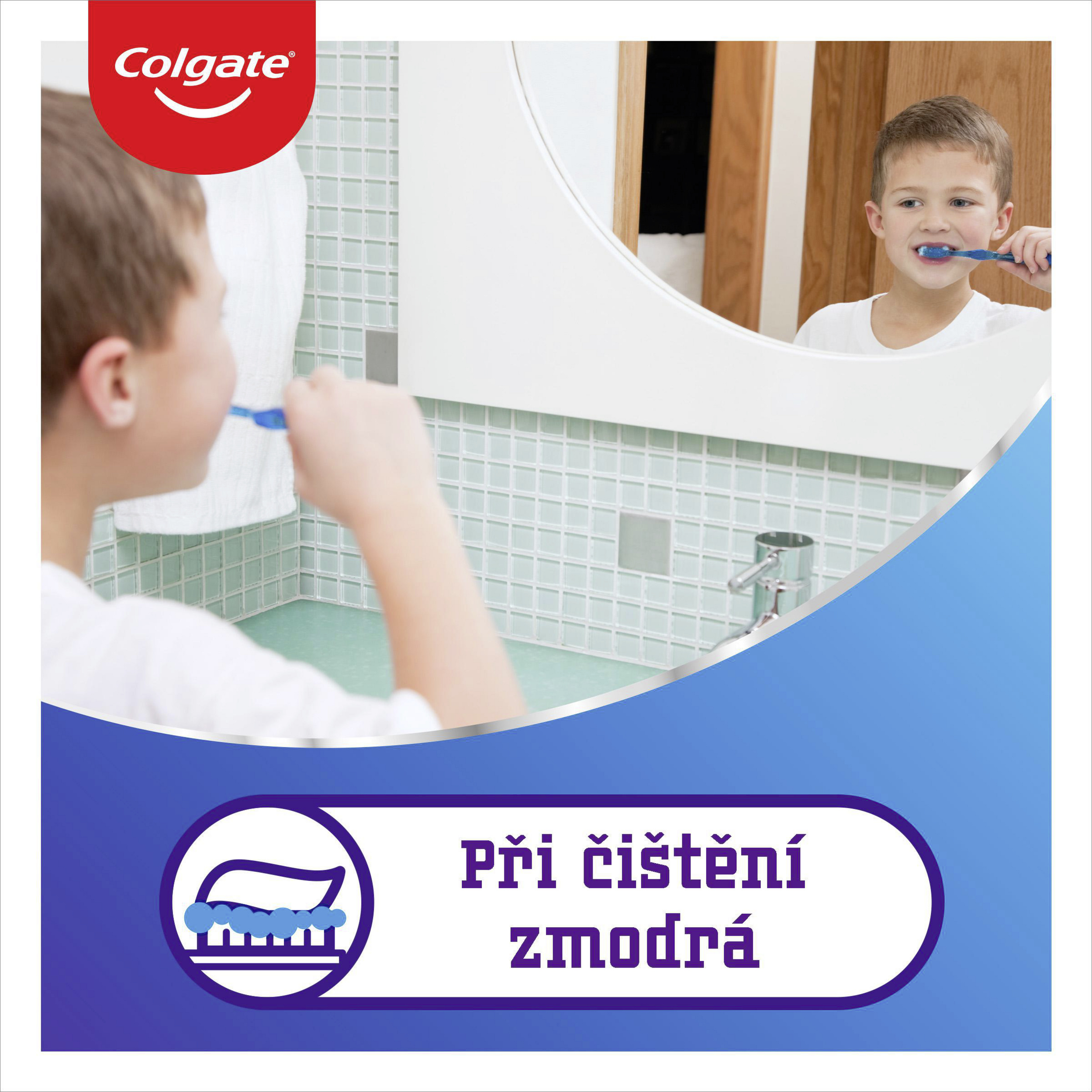Pečujte o malé úsměvy při čištění zubů svých dětí se zubní pastou Colgate Big Kids' Smiles 6-9. Tato zubní pasta pro děti ve věku 6-9 let poskytuje zubům vašich dětí maximální ochranu před zubním kazem a 4× posiluje jejich sklovinu*. Zubní pasta pro děti 6+ byla speciálně navržena tak, aby chránila zuby vašich dětí pomocí neutralizátoru cukerných kyselin, který přímo zneškodňuje cukerné kyseliny obsažené v zubním plaku, které mohou poškozovat zuby a vést ke vzniku zubního kazu. A díky technologii měnící barvu se tato dětská zubní pasta po chvíli čištění změní na modrou, takže děti čištění zubů baví a povzbuzuje je k tomu, aby si zuby čistily doporučenou dobu 2 minut. Jemná dětská zubní pasta s mátovou příchutí také obsahuje zubními lékaři doporučené množství fluoridu, takže víte, že děláte to nejlepší pro úsměv svého dítěte. Pokud hledáte optimální péči o malé úsměvy, používejte zubní kartáček Colgate Little Kids' Smiles s touto dětskou zubní pastou. Udržujte úsměv svých dětí s Colgate. *Po 2 týdnech změna mineralizace v porovnání s běžnou fluoridovou zubní pastou.
