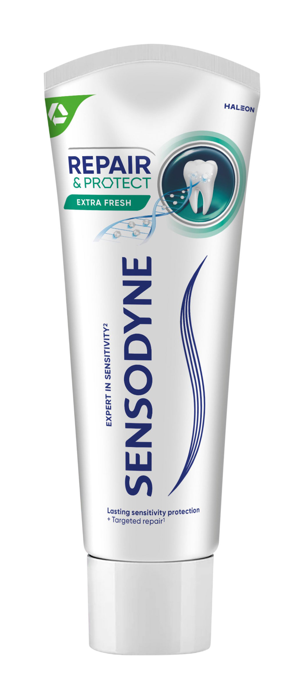 Zubni pasta Sensodyne Repair & Protect Extra Fresh, s technologii NOVAMIN a složením na bázi vápníku, pomáhá opravovat místa obnaženého dentinu tím, že vytváří ochrannou vrstvu podobnou přirozené struktuře zubu. Ulevuje od citlivosti zubů*, abyste si mohli užívat život bez obav z bolesti citlivých zubů. S příchutí Extra Fresh pro svěží dech. - Dlouhodobá ochrana citlivých zubů + cílená hloubková oprava* - Opravuje citlivé zuby* - Nové složení - stejně účinná ochrana před citlivostí zubů ** - Obsahuje fluorid sodný 0,315 % w/w (1450 ppm fluoridu). *Pomáhá opravovat citlivé oblasti zubů tím, že nad nimi vytváří ochrannou vrstvu. Pro dlouhodobou ochranu citlivých zubů používejte zubní pastu dvakrát denně. **při pravidelném čištění zubů 2x denně.