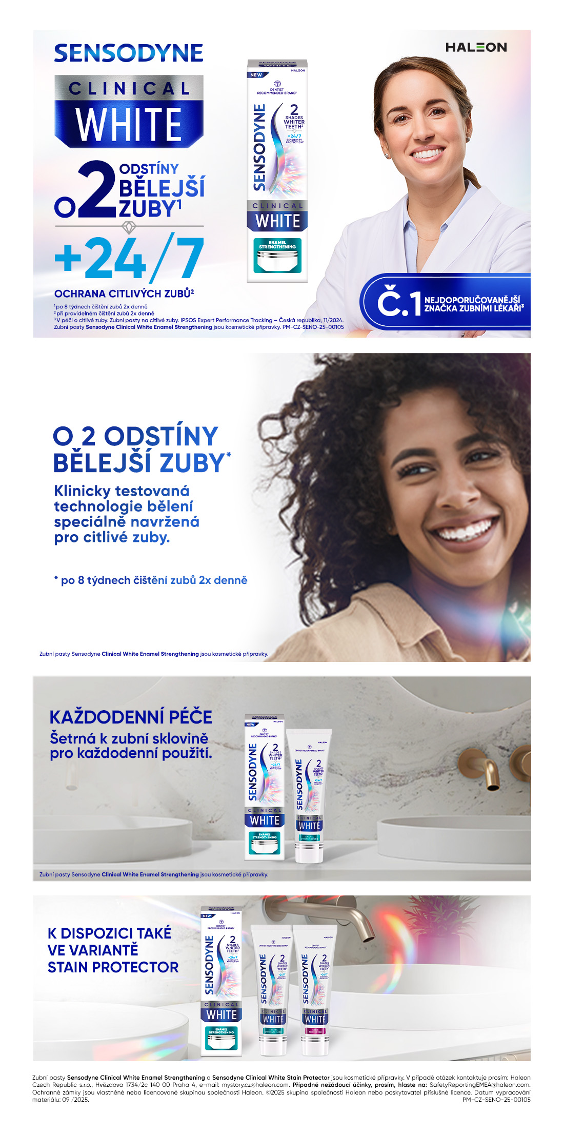 Nejdoporučovanější značka zubními lékaři¹. Klinicky testované bělení navrženo pro citlivé zuby. Klinicky testované složky pro ochranu zubů před citlivostí a posílení skloviny³. Šetrná ke sklovině. O dva odstíny bělejší zuby² + 24/7 ochrana citlivých zubů³.